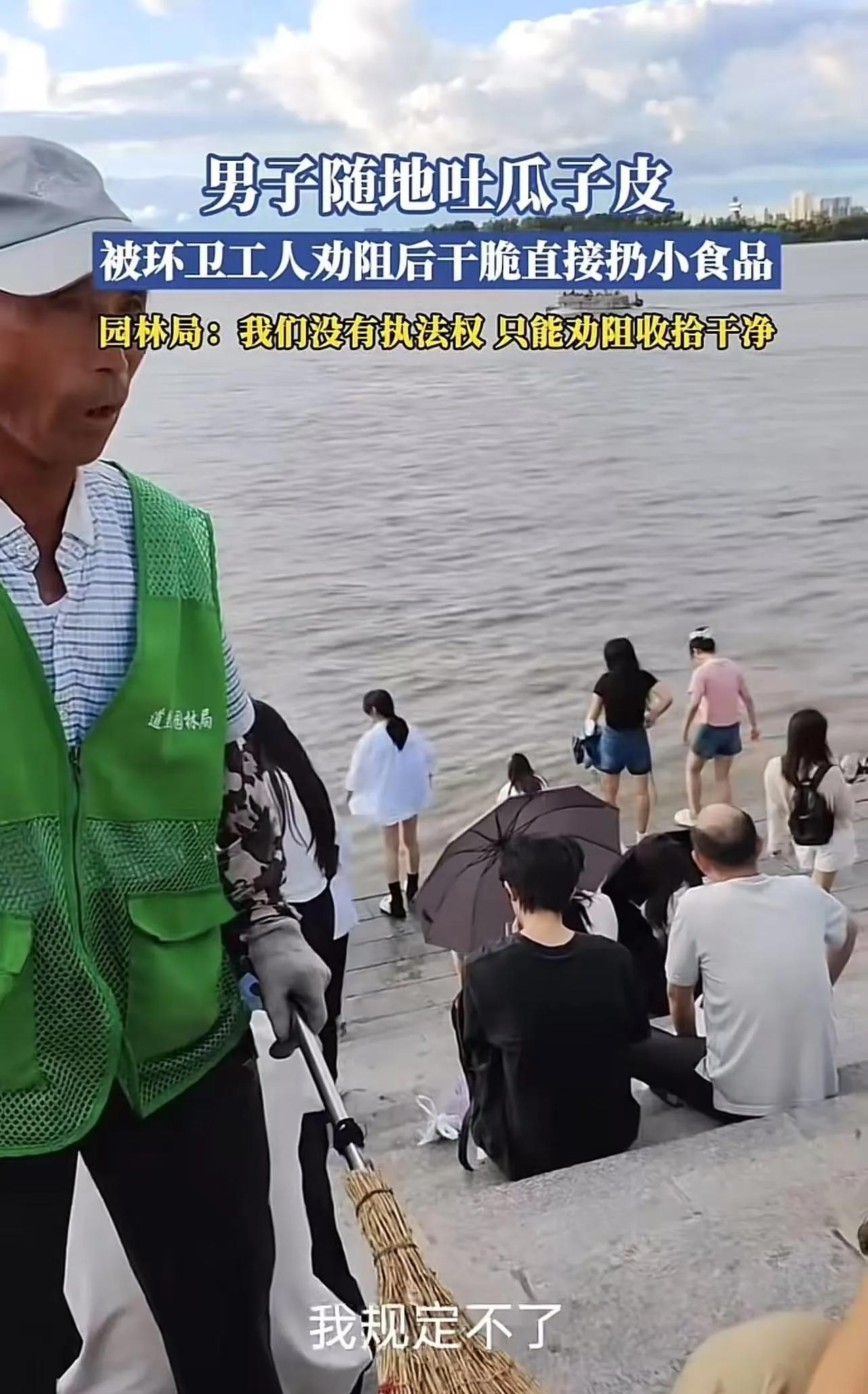 “弯了一辈子的腰,在环卫工大爷面前直起来了?”哈尔滨,男子随地吐瓜子皮,环卫工大爷看到后劝男子不要乱丢垃圾,自己扫地太辛苦了,可没想到男子不仅不听,还故意把面包掰碎扔在地上!园林局:我们没有执法劝,只能劝阻收拾干净!网友:欺负一个老人还算是个人吗? 8月3日,男子在江边游玩,手中抓着一把瓜子,一边嗑着,一边享受着江边的闲适。可是,他的行为却与这美好的环境格格不入——嗑完的瓜子皮随意吐在了地上。 这时,一位头发花白、身着朴素环卫服的环卫工大爷缓缓走了过来。他每日在这江边辛勤劳作,为的就是给市民们营造一个整洁干净的环境。 看到男子这般不文明的行为,大爷心中满是无奈与痛心,便好言相劝道:“小伙子,别乱吐瓜子皮啦,这样多不卫生啊,而且我打扫起来也特别麻烦。” 可这男子却丝毫没有意识到自己的错误,反倒觉得环卫工大爷是在多管闲事,没资格教训自己。 他反怼道:“谁规定不能往地上吐瓜子皮?你规定的?你以为你是谁啊,管得着我吗!” 那语气,充满了不屑与傲慢,仿佛环卫工大爷在他眼中一文不值。 环卫工大爷说:“我规定不了……我就是劝你不要乱扔垃圾,咱们都要爱护这公共环境呀。” 可是,男子却彻底来劲了。他嘴角上扬,露出一丝嘲讽的笑容,故意把手上的面包掰成小块,一块一块地往地上扔,每扔一块,还挑衅地看一眼环卫工大爷,嘴里阴阳怪气地说着:“你能把我怎么着?” 环卫工大爷又委屈又无语,他长叹一口气,无奈地说:“我惹不起你,我也没执法权,行了吧!” 说完,便默默地转身,拿起扫帚,开始清扫男子丢下的垃圾,而男子洋洋得意。 其他游客看不下去,拍下这一幕发到了网上,引发了热议。 有网友说,被提醒了,还故意这样做,这难道不是寻衅滋事吗?不能拘留吗? 也有网友说,我就想知道,这样的无赖难道就没有治他的办法了? 还有网友说,幼儿园的小朋友都知道的事,他怎么就做不到?乱丢垃圾应该罚款,道德约束不了人的恶行! 这看似平常的一幕,实则暴露出了部分人公德心的严重缺失。在公共场合,遵守基本的环境卫生规则,是每个人都应具备的基本素养。 而这位男子的行为,不仅是对环卫工劳动成果的不尊重,更是对社会公德的公然践踏。一个文明的社会,需要每一个人从自身做起,从小事做起,尊重他人的劳动,维护公共环境。 那些肆意破坏公共环境、挑战公德底线的人,终将被社会所唾弃,成为文明进程中的“反面教材”!#头号创作者激励计划#