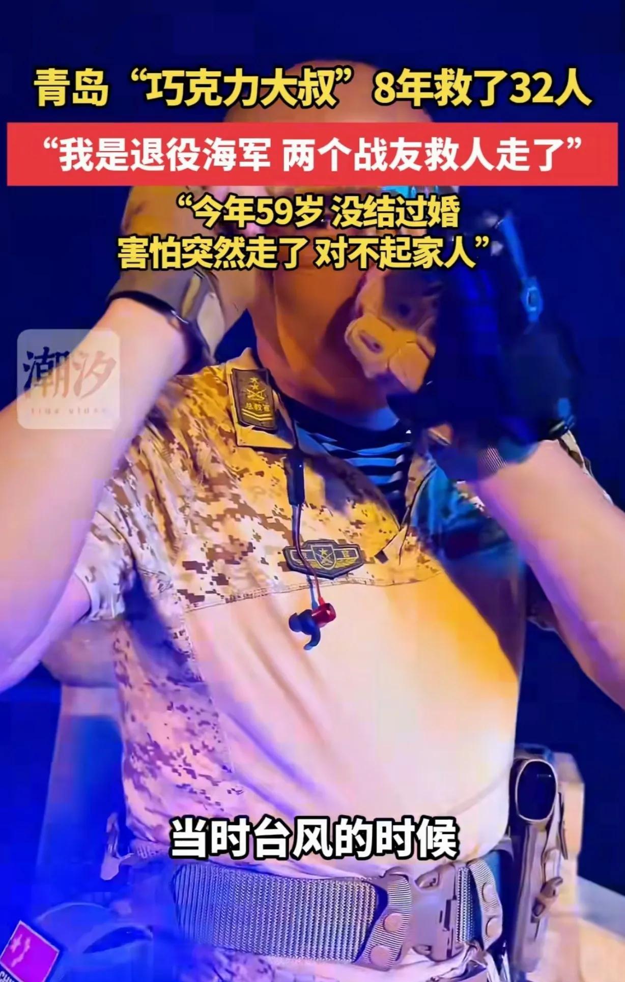 生命至上,大爱齐天,你失却了自己的生活,把时间和生命赋予青岛的海岸线,曾经军人的风采你依然拥有,不愧为军人,海边救助与死神共舞。赵大哥好样的,你是时代的楷模,生命的守护神。
