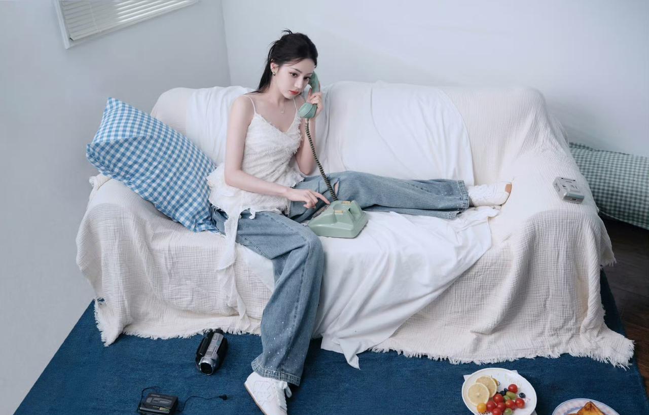 简约蓝白撞色自带呼吸感,阳光洒在发丝间都带着清爽滤镜~