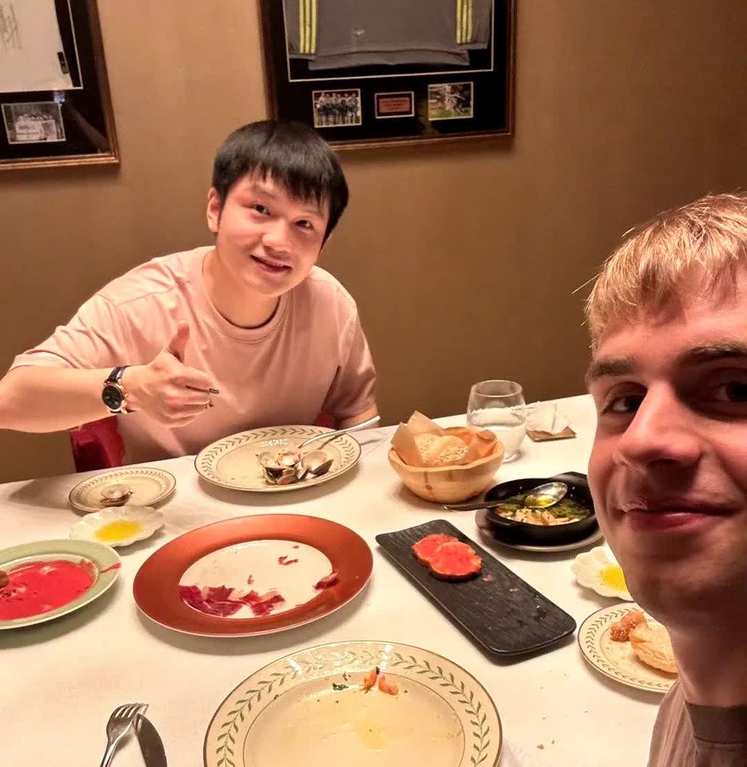 8.4号粉嫰嫰的东哥和小莫聚餐看得出来东哥爱吃花甲哦不愧是广东人[飞吻]