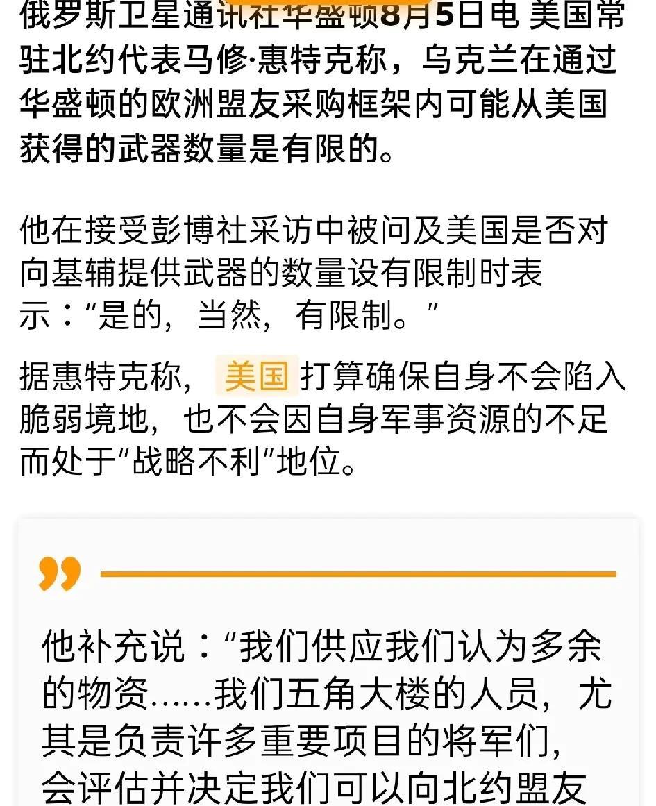 泽连斯基算计落空!乌克兰有被抛弃的风险! 今天,反复无常的特朗普又给予了泽连斯基沉重一击,他们竟然宣布,美国虽然同意北约出资,购买美国武器弹药援助乌克兰,却在武器品类和数量上有严重的限制(具体内容见附图内文章),并不是说北约和乌克兰想要什么武器就是什么武器、想要多少弹药就有多少弹药。这代表着泽连斯基心心念念希望特朗普开恩允许的,乌克兰用欧洲支援的钱购买美国武器弹药来抵抗俄罗斯的模式,即使特朗普勉为其难的同意了,也达不到泽连斯基想要的理想状态。事实上,当美国代表说出美国不愿意因为运送武器给乌克兰而导致美国陷入脆弱这一句话时,表明特朗普政府最顾忌的只是美国的利益,而不是美欧各国元首经常挂在嘴边的国际道义。由此可见,一旦出现冲突,乌克兰可能被抛弃的风险显露无疑!