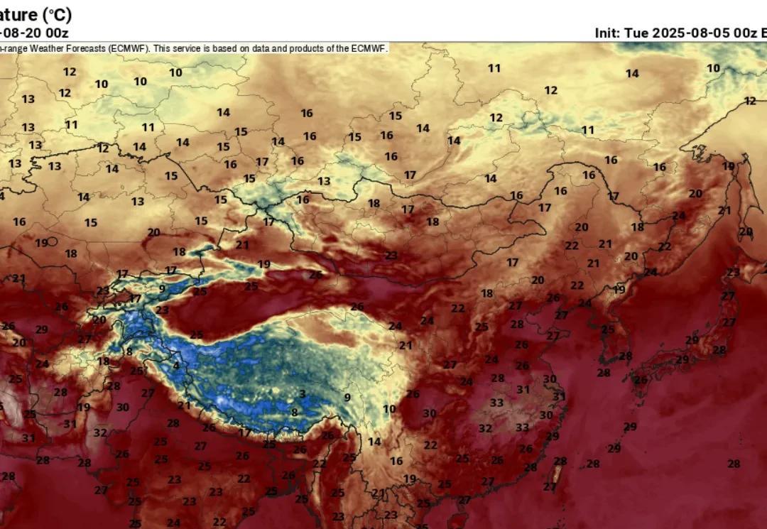 根据最新的 15 天数值预报,8 月 20 日副热带高压依然比较强势。不仅仅是四川,重庆,甚至连青海和西藏中东部一带都是副热带高压控制。 有网友说青海那个是内陆高压,呵呵,那个是副热带高压加强西伸,不是陆地高压。 在强势的副热带高压下,我国大部分地区的温度还是比较炎热的。 从目前的温度预报来看, 8月20日早上,安徽以及湖北东部、湖南北部以及江西北部一带的温度都有可能达到30 度,如果说早上是30 度的话,白天会更加的炎热。除此以外,以及重庆一带也是火热。 …数值仅供参考…