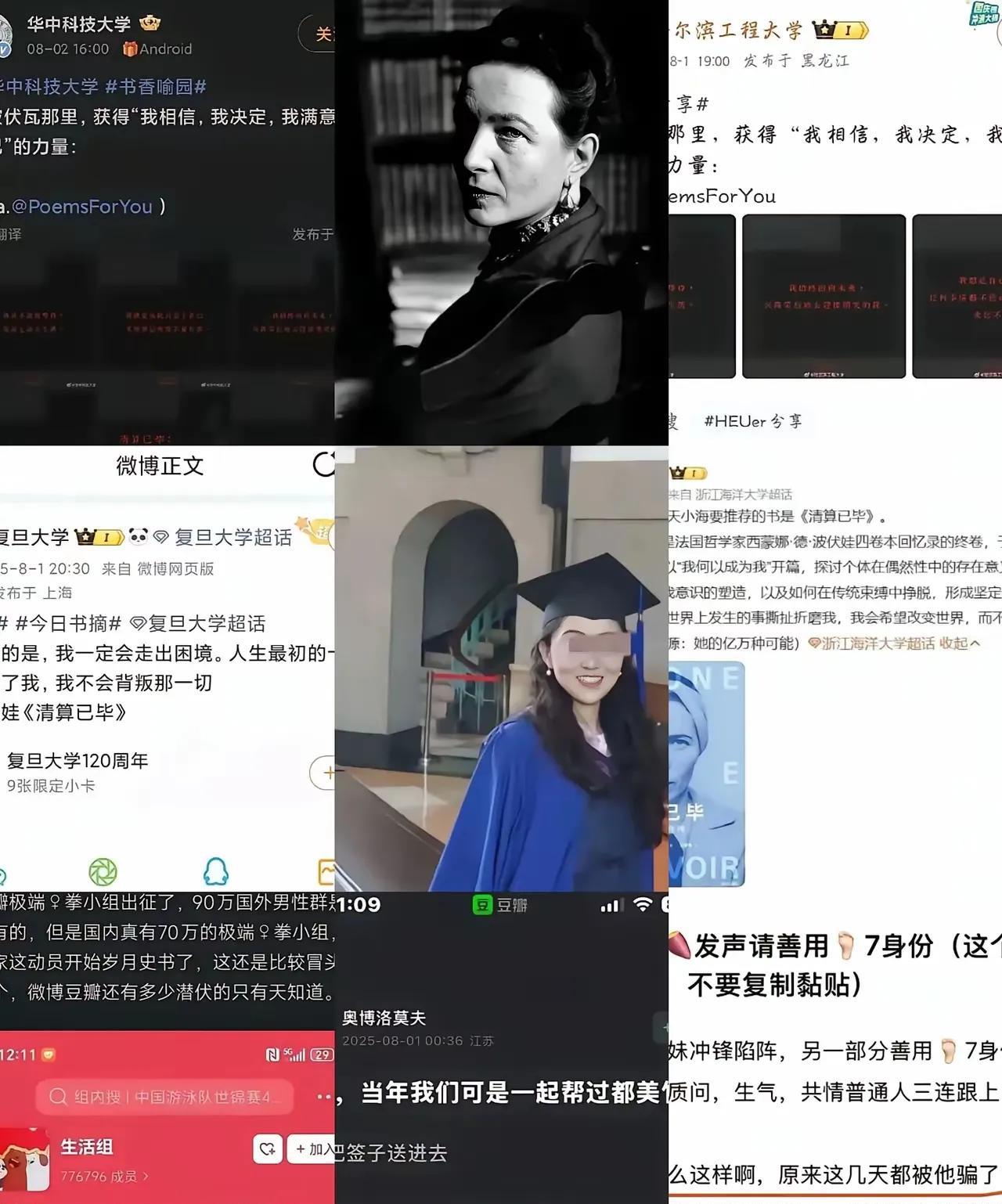武汉大学、复旦、同济和上海交大等大学,先后发布法国女权主义者、性自由主义者伏波娃