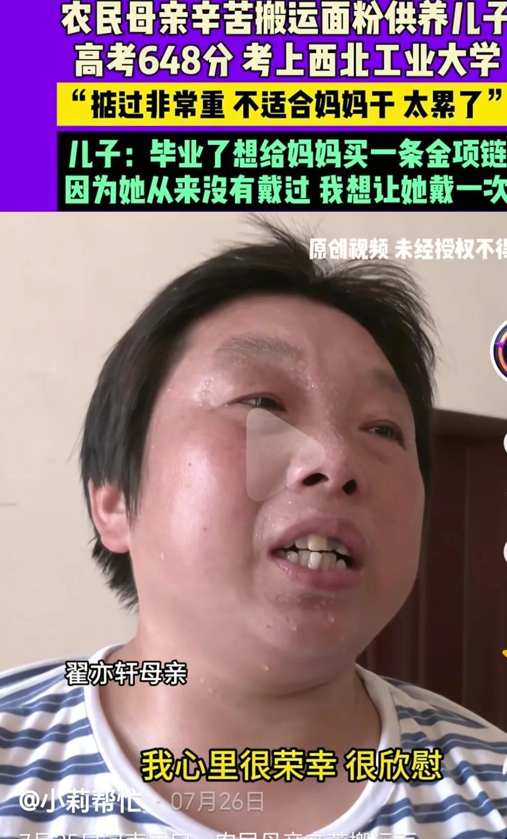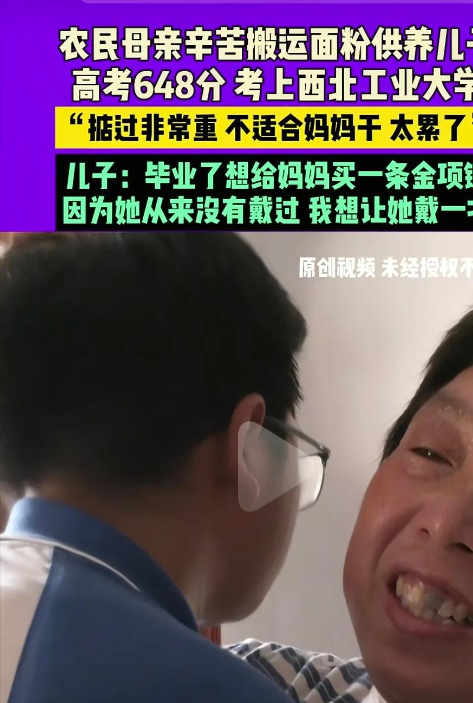 河南周口,一中学教室内,深夜12点还透出一丝微弱的光,保安发现情况后,赶紧进去查看,发现一名男生打着手电在看书,之后,这名男生被全校通报。今年高考,这名男生高考成绩648分,被西北工业大学录取。 2025年7月,河南周口商水县的一个普通家庭里,一位农村妇女,颤抖着手,拆开一封来自西北工业大学的录取通知书,眼泪瞬间夺眶而出! 通知书上赫然写着“翟亦轩”三个字,那是农妇最大的骄傲,她的儿子。 翟亦轩兄妹四人,都要上学,家里有还3位老人要养,而他的父亲,却因病失去劳动能力,全家的重担,全压在母亲一个人身上。 为了能多挣点钱,她每天都要像男劳力一样,在面粉厂装面卸面,一袋面几十公斤重,她扛起来就走,半天下来,汗水湿透了衣服,可她却从不在孩子面前喊累。 懂事的翟亦轩,看在眼里疼在心里,他知道,要想减轻母亲的负担,只有好好学习,于是他拼命学习,一分一秒也不舍得浪费时间。 他曾偷偷去过母亲干活的地方,满满的一袋面,母亲咬牙扛上肩膀的一幕,扎的他心生疼,他在心里暗暗发誓,一定要好好学习,将来让妈妈过上好日子! 他的英语曾是短板,基础薄弱到连老师都替他捏把汗。可这个倔强的男孩硬是靠着一股狠劲,每次作业批改后立刻标注错误、反复订正,最终把弱科变成了强项。 他的英语老师感慨:“这孩子最大的优点就是踏实,迎难而上,从不退缩。” 翟亦轩总觉得时间不够用,不知不觉就学习到深夜,于是,学习熄灯后,他就打着手电在教室里学习。 这天夜里12点了,值班保安发现有间教室里透出微弱的光,顿时警觉起来,蹑手蹑脚过去一看。这才发现,有个男生在打着手电看书!他就是翟亦轩。他因此成了全年级第一个因为学习被通报的学生。 后来,他干脆转战洗漱间外,借着走廊的灯光继续啃书本,常常熬到凌晨才回宿舍。问他为什么这么拼?他只说了一句:“为了让我的家庭变得更好。” 这句话,成了他整个高中生涯的信念支撑。没有补习班,没有优质资源,有的只是一遍遍的刷题、总结、再刷题。 最终,西北工业大学的录取通知书,成了对他努力的最好回报。 捧着通知书,全家人乐开了花,奶奶逢人就说:“我孙子考上了985!”爷爷笑得乐不拢嘴,直问:“985是个啥?” 而翟亦轩的母亲,泪如雨下,多年的辛苦终于有了回报,她说:“我不怕苦不怕累,就是为了让我的孩子能有出息。” 多少个夜里,她曾深深愧疚,恨自己没有能力,给孩子创造更好的生活条件。 翟亦轩虽然不善言辞,可他深知母亲的辛苦,一有空回家,他就给妈妈端茶倒水,端洗脚水,捶背捏肩,特别体贴。 他心里有个埋藏已久的愿望,那就是要给妈妈买一条金项链,金手镯,因为,别人的妈妈都穿金戴银,可自己的妈妈却从没戴过一次金首饰。 河南省体彩中心周口分中心得知情况,登门送上10000元奖学金,为这个寒门家庭送上温暖和祝福。 翟亦轩的故事,是典型的“寒门贵子”剧本,但比剧本更真实、更戳心。 翟亦轩的故事,让人想起那句话——“生活朝我扔泥巴,我拿泥巴种鲜花。” 他没有抱怨出身,而是用行动证明:寒门依然能出贵子,只要足够坚韧。 如今,他即将踏入985名校,未来或许能改变整个家庭的命运。而他的母亲,那个扛起全家的女人,终于可以骄傲地说一句:“我的孩子,真的争气。” 来源:小莉帮忙