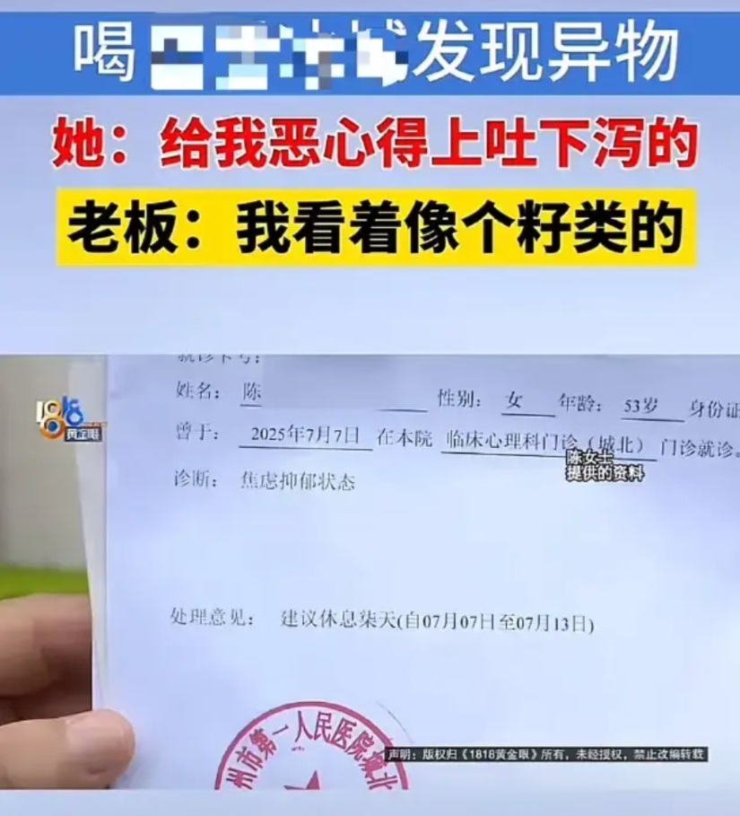 陈女士喝出的到底是什么?对此您怎么看?