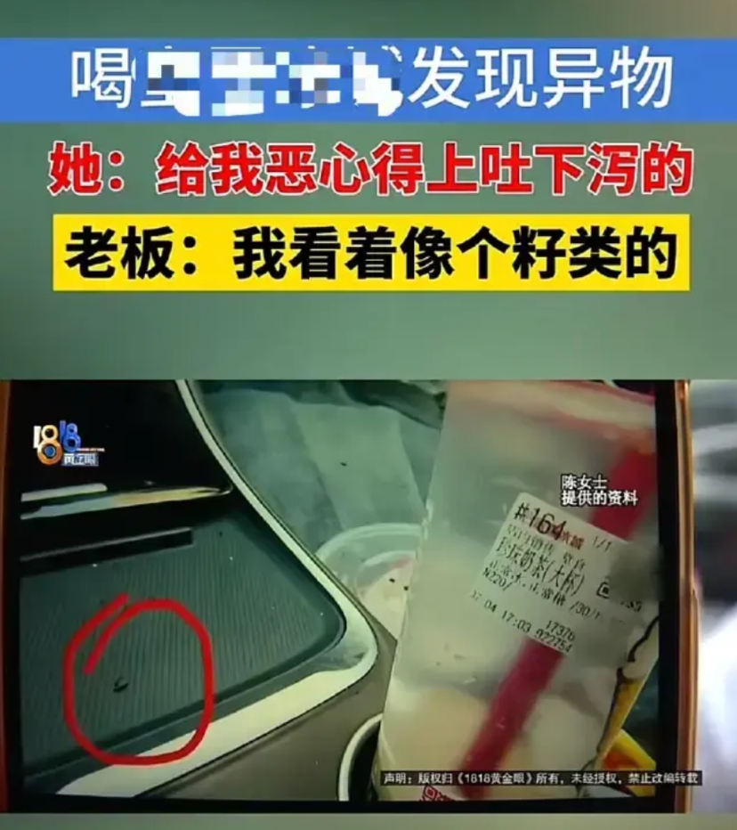买完奶茶后陈女士没有马上喝,而是赶着去接乘客了。晚上接近8点时,陈女士喝了两三口下午买的奶茶,谁知感觉到了异物。