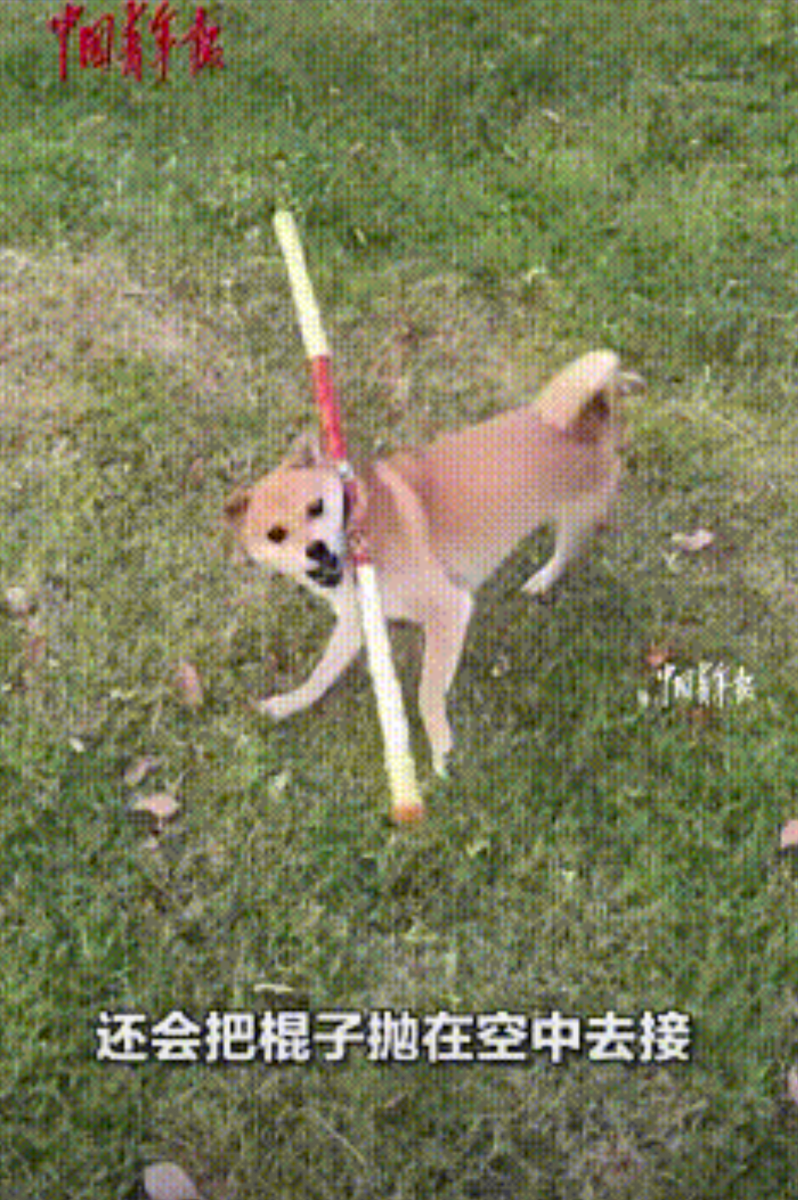 女子领养这只狗狗时,它只有一个月大,因为女儿喜欢就一直养着,每次遛狗的都是她带出去的,刚开始时,狗狗就很活泼,会跳高高,转圈圈,玩各种瓶子…特别爱玩棍子,久而久之,狗狗就将棍子玩出了各种花样。