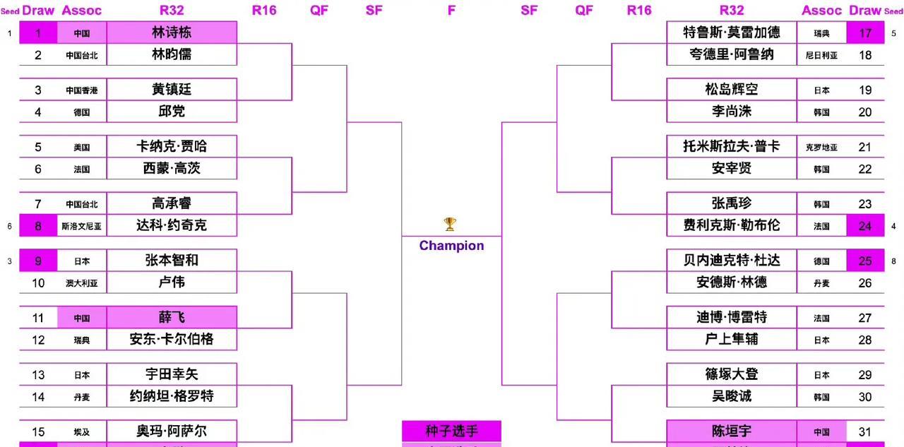 WTT冠军赛横滨站男单签表发布! 巴奥积分一清,林昀儒掉出前十没了种子位,刚掉出