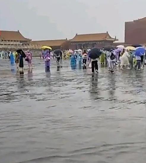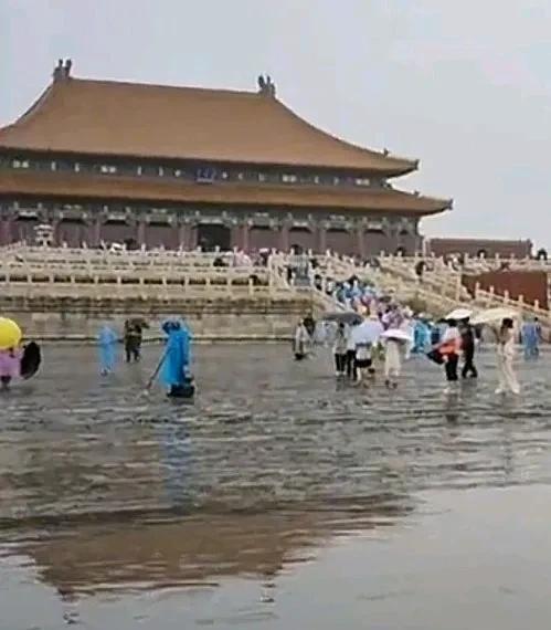 大雨冲了龙王庙,上周三北京暴雨,故宫罕见积水,却意外火出圈。太和殿前1142个石