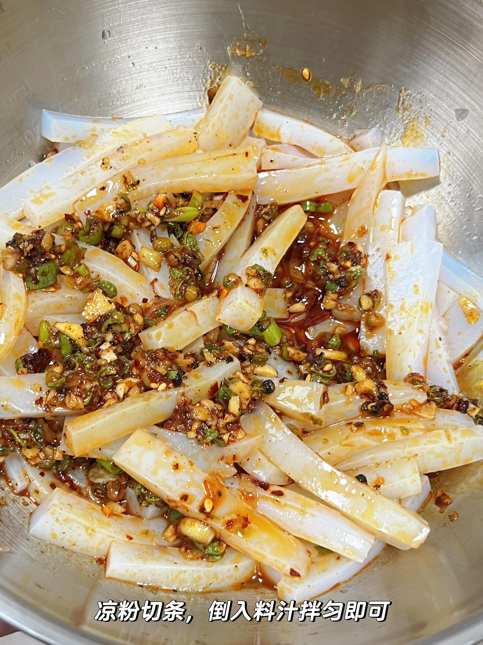夏天来这样一碗凉粉,简直太安逸了~ 小时候家门口一直都有几颗花椒树 每次拌凉粉时,我妈总是摘几颗青花椒和蒜粒一起捣碎,那个味道真的记忆深刻 刚好这几天家里买了青花椒,拌凉粉时就派上用场啦!加几颗青花椒和蒜粒一起捣碎,真的香极了~ 快去试试吧!