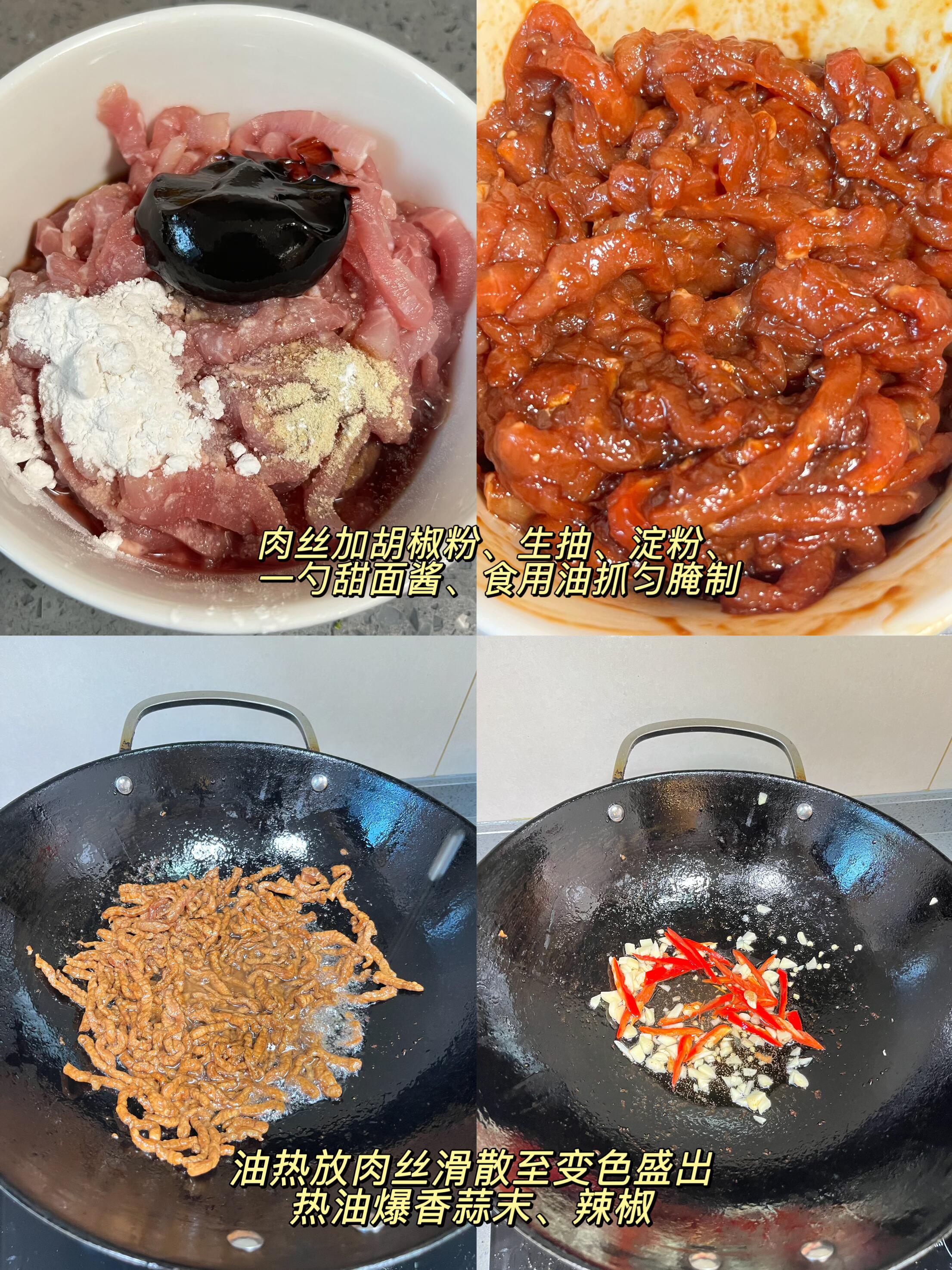 葱爆肉丝!!真的真的巨好吃~ 今天吃葱爆肉丝,这道菜已经做过好几次啦! 每次吃都很惊艳,还没有试过的朋友赶紧试试吧 做法: 1、肉丝加胡椒粉、生抽、淀粉、一勺甜面酱、食用油抓匀腌制 2、油热放肉丝滑散至变色盛出,热油爆香蒜末、辣椒,放葱白和肉丝快速翻炒 3、放盐、生抽、鸡精调味,然后放葱叶翻炒几下即可 葱香浓郁,肉丝嫩滑,真的超下饭