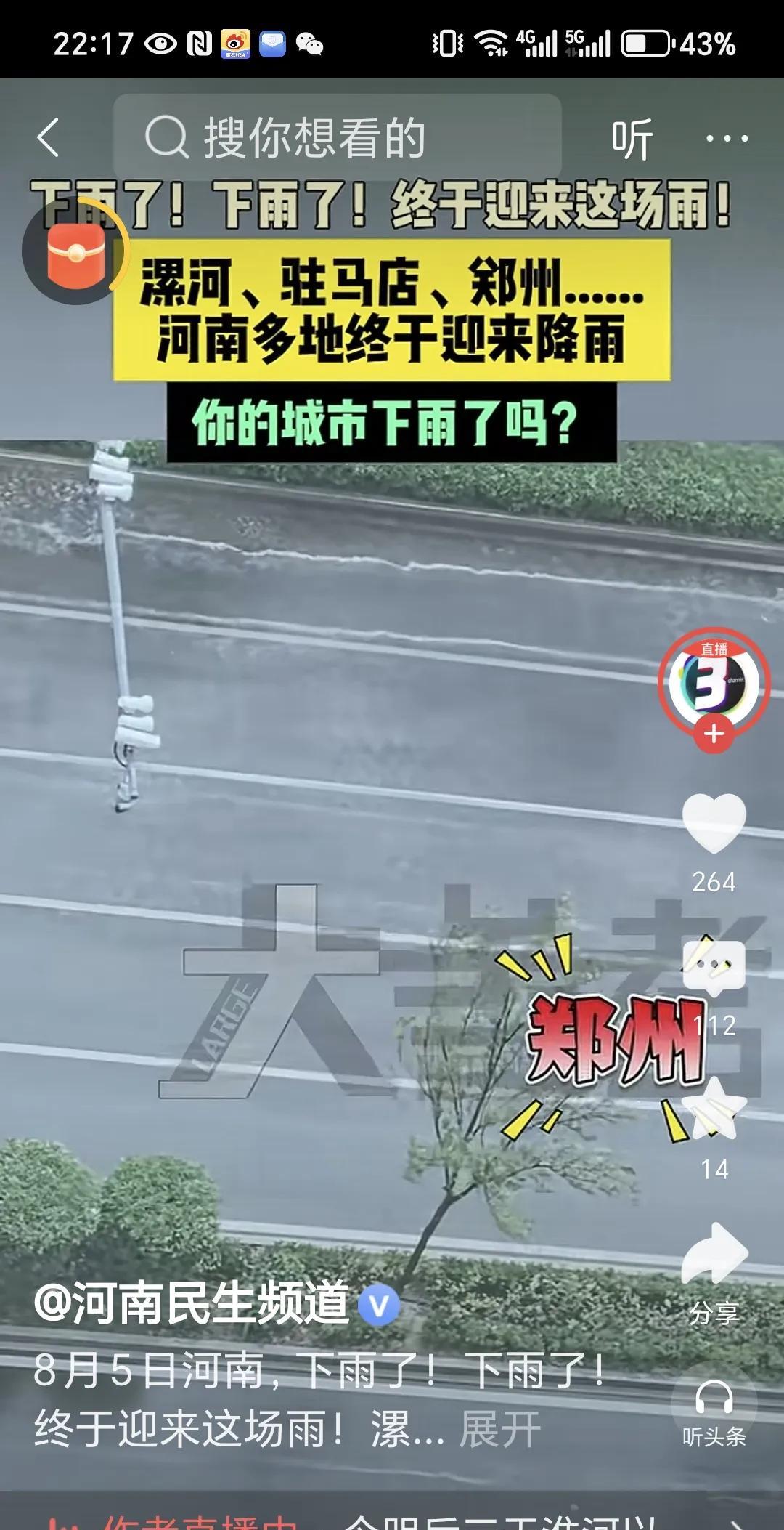 干旱的河南驻马店、郑州、漯河下了一场透雨。 这可把当地人高兴坏了。 要知道前段时间因为干旱, 许多河流、湖泊、池塘都见底了, 庄稼更是旱的枯萎了。 而这场透雨则大大的缓解了旱情。 更是让山区的农作物重现生机。 难怪从视频中看到当地的人们一个个兴高采烈。 只是这场雨在我们河南鹤壁下的太小了, 真希望我们河南鹤壁也来一场透雨。