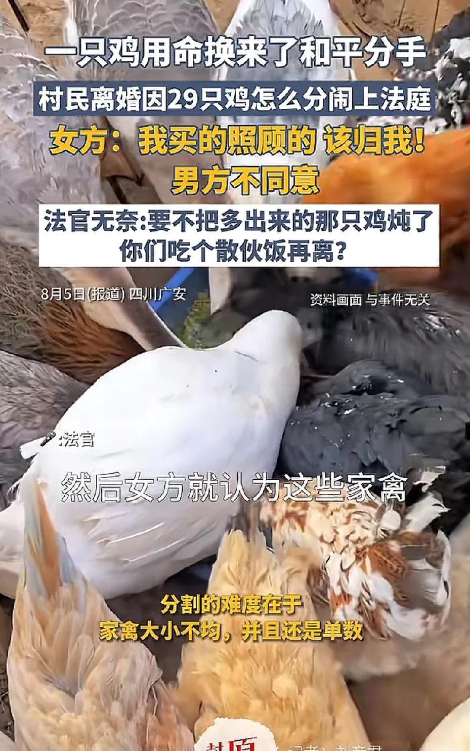 四川广安,男子和妻子离婚,他们的离婚财产就是29只鸡、22只鹅和2只鸭子,家禽有