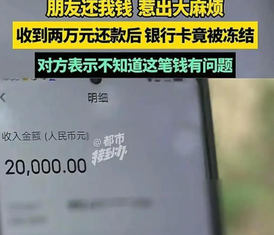 河南郑州,男子拿了2万元给朋友急用,2天后,朋友给男子转来2万元,可万万没想到,半个月后,男子的银行卡突然被封了。他联系朋友,朋友却说:这是别人给她转的钱,她也不知道钱有问题,她的卡也被封了。朋友说出的真相,让男子傻眼了。 黄先生在郑州开铺时,借给多年好友2万现金,对方两天后还款,半个月后他却因这笔钱是涉案资金,银行卡被北京警方冻结,房贷无法扣除,生活陷入困顿。 原来朋友的还款来自可疑的“炒黄金收益”,自己也毫不知情,现在黄先生正配合警方提交证据,等证明清白退回资金后,银行卡才可以解封,朋友后面还需要重新还款。 这事儿虽然不是黄先生和朋友的错,却暴露了当下借钱的风险,钱的来路越来越复杂,哪怕熟人之间,也可能藏着看不见的坑。 在以前,借钱简单明了。爷爷那辈,村里谁家盖房、娶媳妇缺钱,街坊邻居你五十我一百凑现金,还钱时带点新粮,钱的来路无非是种地、打工,清清楚楚。 可现在不同了,现金交易少了,手机一点钱就转来转去,中间经过多少手、沾过什么“灰”,谁也说不清。朋友说急用钱,可能是真急,但他拿这钱做什么,你未必清楚。 就像黄先生的朋友,说炒黄金像正经理财,其实可能是骗局,转来的钱说不定刚从被骗者账户流出,警察顺着痕迹就找到了你。 有人觉得,跟熟人借钱还问东问西,太伤感情。这话在以前或许对,现在却得改改。不是不信朋友,是坑太多,多问一句,既保护了自己,也帮了朋友。 其实问也不用生硬。朋友借钱时,笑着说句“这钱急用在啥地方?有难处咱一起想”,既显得关心,又能知道用途。对方说“炒黄金”“搞投资”,就多句嘴“现在行情得小心,别被骗了”,说不定就能帮他避开陷阱。 就算没避开,知道了用途,真出问题跟警察解释也方便。像黄先生,如果能说清“朋友当时说家里急事才借的”,再拿出聊天记录、现金交付证据,处理也能快不少。 有人担心这会显得生分,其实真正的朋友不会因此不高兴。去年我表哥借钱给发小,问了句“是不是给工人发工资”,发小还笑他“操心命,放心,正经生意”。后来发小工程款没及时到账,表哥还帮他介绍催款律师,俩人关系反而更铁。 说到底,熟人互相帮衬该有,但需要有章法。就像开车系安全带,不是不信车技,“不怕一万,就怕万一”。时代变了,借钱的规矩也得跟着变。现金交易最好留纸条,转账备注清楚“还款”,问清用途,不是小气,是对彼此负责。 普通人过日子图安稳,别让一次好心帮忙成了麻烦。多一分小心,不是疏远朋友,是让这份情分安稳走下去。谁也不想因为一次借钱,最后连朋友都做不成,您说对吧? 信息来源: 河南都市报|河南郑州,男子拿了2万元给朋友急用,朋友给男子转来2万元,半个月后,男子的银行卡突然被封了 文|黑子 编辑|南风意史