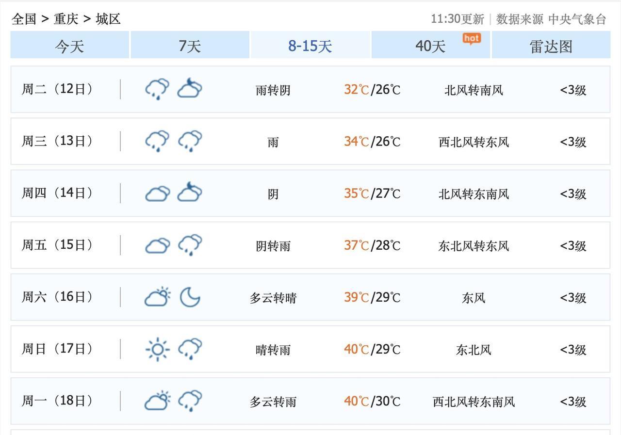 重庆人太惨了!好不容易盼来降雨降温,但是,8月6日到10日,重庆主城区,最高气温