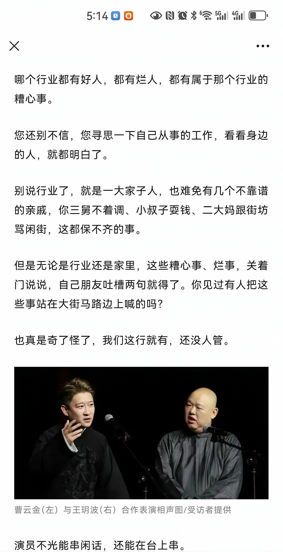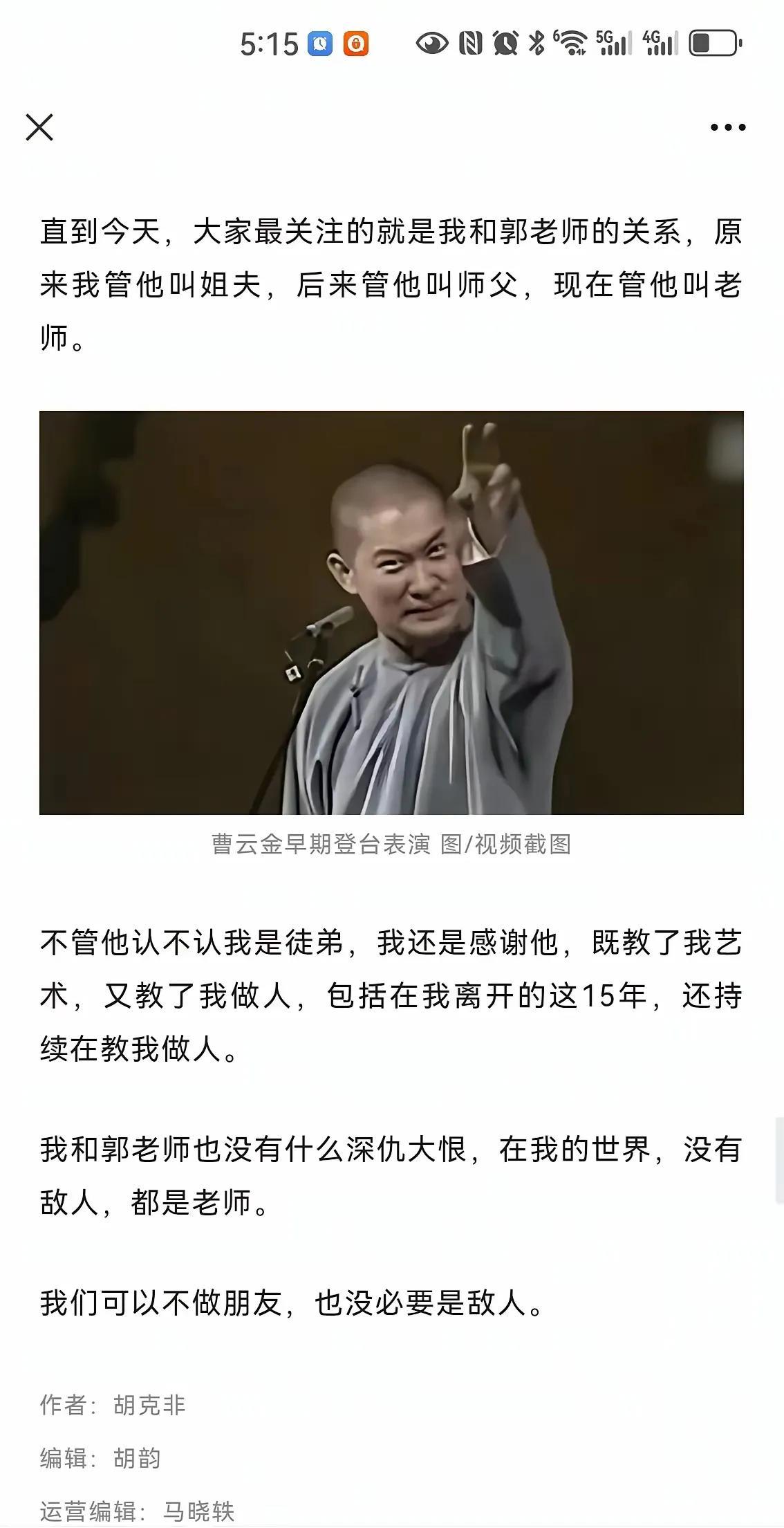 曹云金掏心窝的话,主动提到郭德纲 1.原来叫姐夫,后来叫师父,现在叫老师 2.郭