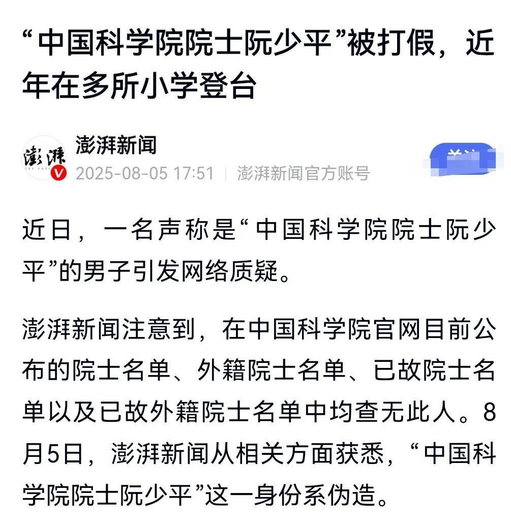 真是好大的胆子。 8月5日,据媒体报道。 “中国科学院院士阮少平”被打假。 想不