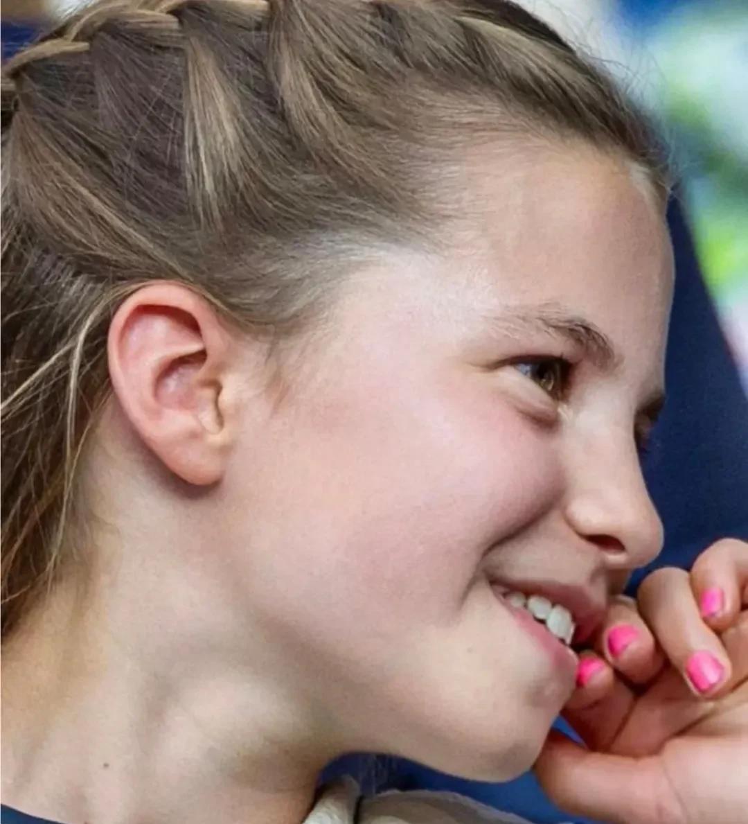 夏洛特公主漂亮的绿色眼睛 夏宝小时候是蓝色眼睛,长大以后和妈妈一样,其实感觉绿眸很适合她,很漂亮。挡住头发完全就是他爸威廉,笑起来太像了,第三张照片感觉有点像黛安娜了。