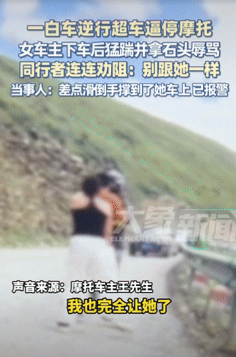 “严惩到底!”甘肃甘南,一男子骑摩托车拐弯时,突然被逆行超车的汽车逼停,还没等男子发作,女车主下车后,竟猛踹摩托车的后备箱,并抓扯辱骂男子,气的男子直接报警,没想到,女车主接下来的做法,让男子很意外,网友:这么有恃无恐吗? 2025年8月2日下午,甘肃甘南的江迭公路上,阳光正烈,可35岁的王先生心里却瞬间凉透。他骑着自己的贝纳利摩托车,正沿着G248线往扎尕那景区去。 这条路他熟,全程100多公里,大多是没铺好的砂石路,绕着山盘来盘去,旁边就是一眼望不到底的悬崖,窄得刚够两辆车并排过。 王先生是白银人,就爱骑着摩托到处转。 这天下午3点多,离扎尕那还有40来公里,前面堵车了,大家都排着队慢慢挪。 突然,对向车道里冲出来一辆白色奔驰,鲁H的牌子,在一个U型弯里直接逆着就超了过来。 王先生当时正走在靠悬崖的外侧,吓得赶紧往栏杆边贴,猛踩刹车。 他那摩托车三百公斤重,急刹的时候差点摔下去,下意识用手往奔驰的引擎盖上一撑才稳住,就这轻轻一碰,麻烦紧跟着就来了。 奔驰车停下来,女司机田某某从车上下来,二话不说就朝着摩托车尾箱狠狠踹了一脚,又从路边捡起块石头,指着王先生骂骂咧咧:“你敢撞我车?” 王先生赶紧解释自己是为了稳住车才碰到的,可对方根本不听,嘴里脏话没停,还摆出要动手的架势。 幸好奔驰车上还有个同行的男的,还算明白事理,一个劲劝王先生别跟她计较,又把女司机拉着不让往前冲,这才算没打起来。 那男的还替女的道了歉,最后开车把人拉走了。 王先生当时气得够呛,想报警,可那地方没信号,只能先骑着车往前走。 等开到扎尕那景区,才发现摩托车尾箱没了。 他回头看了看,尾箱上还有个清晰的脚印,肯定是刚才被踹坏了锁,颠掉了。 那尾箱是他三个月前刚买的,一套下来五千八,单这一个就值两千,里面还有身份证、银行卡这些要紧东西。 那天傍晚六七点钟,天开始黑了,王先生往回找了十多公里,啥也没看着。 等有了信号,他立马报了警,要求田某某赔损失,还得公开道歉。 可警方调解的时候,田某某说道歉行,赔偿想都别想。 这事儿发生在卓尼县和迭部县交界的地方,刚开始俩县的警察都介入了,后来确定归卓尼县管。 8月5号,卓尼县公安局发了通报,说双方都不接受调解,已经派工作组去当事人那儿接着查,该怎么处理就怎么处理。 现在王先生已经回白银了,还得再跑五百多公里去迭部县配合做笔录。 想想就窝火,好好的摩旅变成这样,换谁都受不了。 说句公道话,这事儿明摆着是奔驰女司机错得离谱。 逆行超车本身就违法,还是在那种悬崖边上的急弯,这不是拿自己和别人的命开玩笑吗? 就算王先生不小心碰到车,也该先看看情况,上来就又踹又骂还拿石头威胁,这叫什么事? 要是当时女司机能冷静点,下来问问情况,道个歉,估计啥事儿没有。 退一步说,就算有纠纷,也该先保护好现场,等警察来处理,而不是靠耍横解决问题。