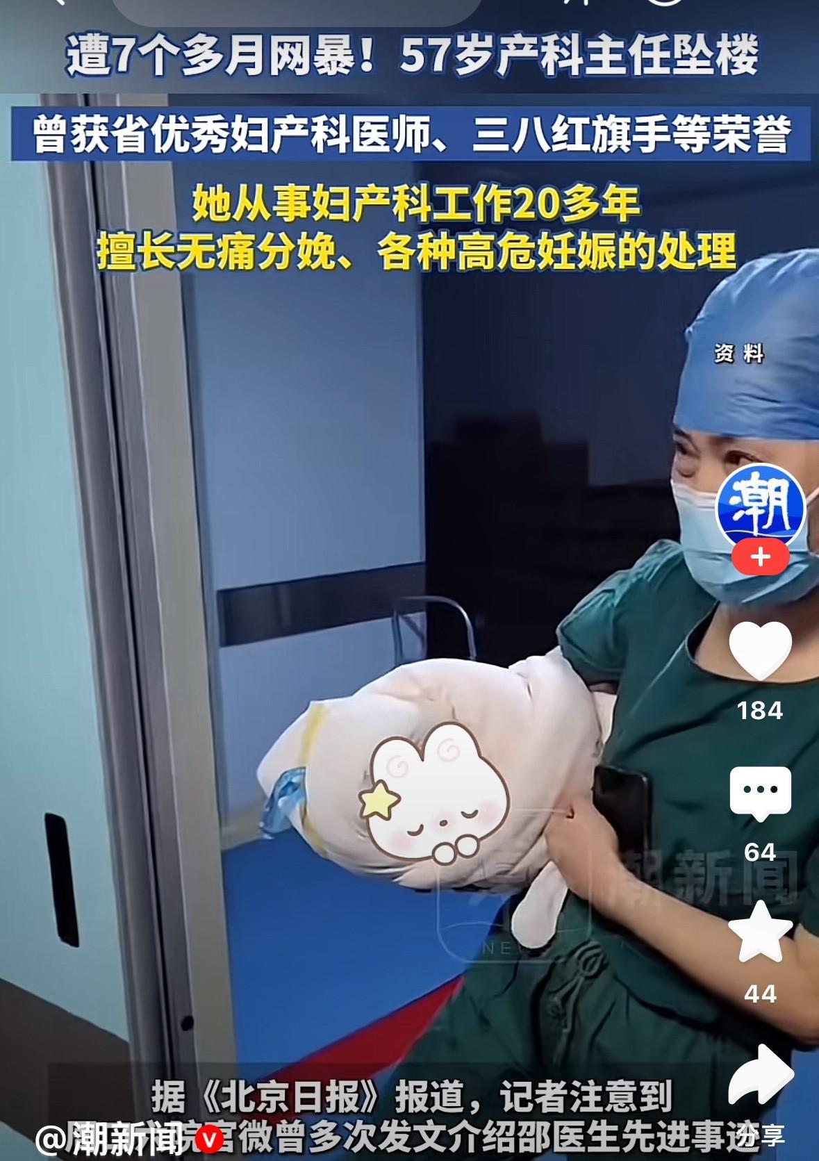 河南某医院妇产科主任,被网暴7个月后,选择跳楼自证清白。 她从医20年,接生新生
