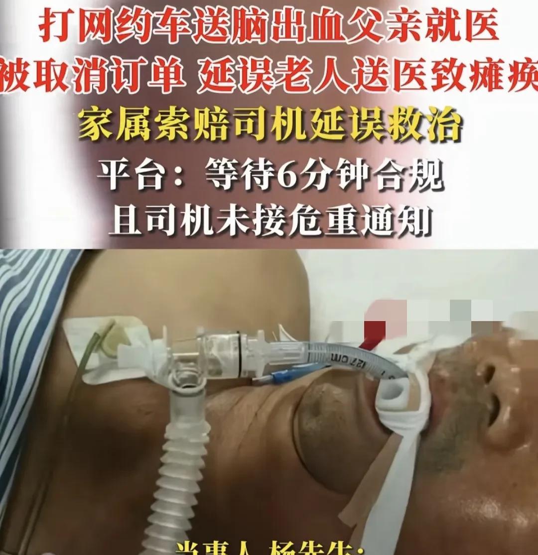 江西吉安,男子的父亲突发疾病,为了快一点,打了一网约车,他和母亲把昏迷父亲抬上轮椅,下楼后,司机不见踪影,电话也打不通,再一看订单被取消,男子只好打了120,不料,老人脑出血,治疗后瘫痪、失语,男子认为司机突然取消订单,耽误了老人及时治疗导致瘫痪,要求司机赔偿,而平台回复:你没告知是危重病人,司机等待6分钟取消订单,符合标准。男子却不服气。 8月5日大象新闻报道一件,网约车遇到危重病人可不可以“不拉”? 此前,杨先生的老父亲在家突然得了急病,他考虑到打120急救车,可一看大概要10多分钟才能到,怕耽误急救时间。 杨先生急忙打了一辆网约车,上面显示司机3分钟就会到达。 时间紧迫,杨先生和母亲费了好大力气将昏迷的父亲抬上轮椅,推着去等电梯。 等电梯的时候,司机给杨先生打来电话催促。 杨先生心急如焚,告诉司机:我这边是一个病人,你稍微等一下,马上下来,已经在按电梯了。 当时杨先生也理解司机着急,但为了让司机能等待他们一会儿,还特意重复了3句,希望对方能重视。 结果,当杨先生和母亲推着昏迷的父亲下了楼,出了电梯,眼前哪有司机的踪影。 杨先生找不到司机,心慌不已,赶紧给司机打电话,可是,对方电话一直打不通。 杨先生又慌忙打开订单一看,心彻底凉了,司机已经取消了订单。 他是又急又气,只好立马打了120。 不料,杨先生父亲送到医院后,确诊脑出血,开颅手术后,老人瘫痪了,也不能说话了。 父亲瘫痪了,杨先生心里不痛快,他觉得就是司机取消订单,耽误了老人及时送医,才导致老人瘫痪的,所以,司机应该赔偿。 平台方表示,司机是事发当天10点12分到达的,10点18分取消的订单,司机等待6分钟取消订单是符合规则标准的。 另外,杨先生打车之前没有明确告知司机接送的是一位危重病人。 最终,平台表示会记录司机的行为,但是,无法给杨先生更高的补偿。 杨先生找了媒体反应此事,他说:“你要接不了这个单子,也跟我说一下,也不要让我耽误这几分钟去找你,再打120。” 1、这件事的争议焦点是,杨先生父亲突发疾病,情况危急,每一秒的延误都可能对患者的生命造成危险,他紧急下单网约车,期望能尽快将父亲送往医院接受治疗。 然而,而司机却未充分考虑到乘客的紧急需求,选择取消订单。 但杨先生认为,不管有没有提前告知病情,司机知道是送病人的,就应该意识到情况的特殊性,尽到更多的责任。 杨先生作为乘客认为打了网约车,司机就有义务送客,或者不送之前应该提前说明。 而司机出于得知对方是病人,且上车时间慢,在规定时间内取消了订单,也并无不妥。 有人说,首先要搞清楚网约车的性质,网约车不是救护车,在路上没有违章的特权,说时间网约车比救护车快是不成立的。再说你坐网约车就应该了解网约车的规定,超时不等合情合理。 按平台所讲,司机是按规定取消订单,属于无责取消取,(平台规定司机车辆必须到达乘客上车点后等候3一5分钟),乘客先迟到了,怎么怪上司机呢? 假如碰到这种单子,你怎么搞?人家都要你赔钱,延误了治疗,要你赔钱,死在你车上,你要赔钱,怎么搞都要你赔钱?网约车不是救护车,没有义务,没有责任帮 你这个事情。 2、从法律角度看,拒载行为通常发生在司机明知乘客需要运输服务,却故意拒绝的情况下。 《民法典》第811条规定:旅客运输合同成立之后,承运人便有了安全地将旅客运送至目的地的义务。 在此事件中,司机未被明确告知接送的是危重病人,且按照平台规则等待6分钟后取消订单。 由于司机并不知晓乘客病情的危急性,其行为难以被认定为“明知而拒载”。 因此,在缺乏主观故意的情况下,司机可能不构成拒载行为,也无需承担因拒载导致的民事赔偿责任。 3、如果,司机明知接送的是危重病人,仍取消订单,要承担什么责任呢? 如果说,乘客在下单时已明确告知司机接送的是危重病人,司机则应意识到运输服务的紧急性和特殊性。 此时,司机如果仍取消订单,可能被视为未尽到法定救助义务,构成过错。 《民法典》第822条规定:承运人在运输过程中,应当尽力救助患有急病、分娩、遇险的旅客。 因此,在明知乘客为危重病人的情况下,司机仍取消订单的行为,可能需承担相应的法律责任,包括民事赔偿责任。 但此事中,司机并不知道乘客是危重病人,因此,可能不需要承担赔偿责任。 最后,也提醒大家,家里有病人需要紧急救治时,第一时间应该先打120求助,这样可以在最短时间得到有效救治。 关注@福康说法 从日常点滴学法律,生活安稳更有底