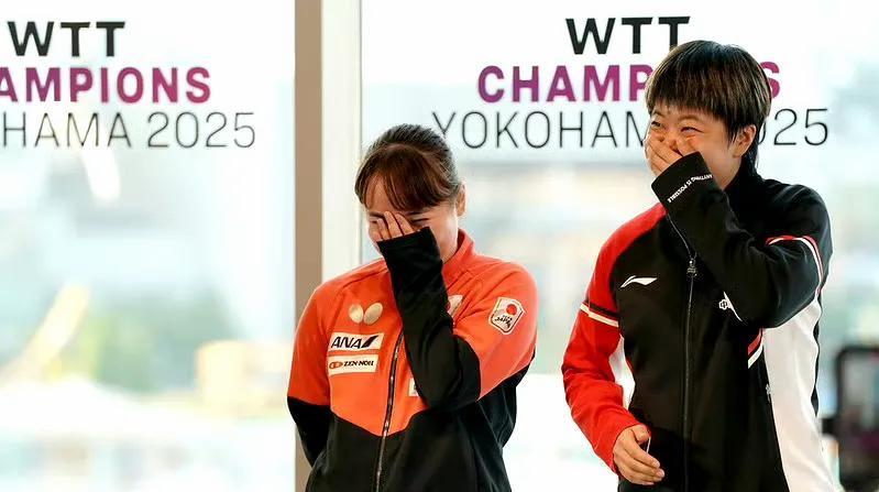 WTT横滨冠军赛抽签仪式上,王艺迪和伊藤美诚发现被抽在一起,两人乐不可支,和场上的“狠叨叨”形成鲜明对比。
