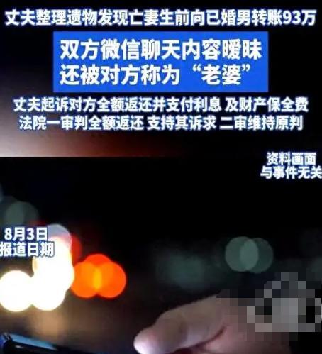 如今,在网络上流传着这样一句玩笑话:如果我噶了,请先格式化我的手机!由此可见,对于大多数人来说,手机里的内容十分重要,且不能被外人得知。 但是,这种情况基本都是针对年轻群体,毕竟结婚多年的老夫老妻一般都对对方知根知底,并不存在手机内容不能看的情况。 但来自浙江的大陈则在妻子去世后,从妻子的手机中发现了一个让他无法接受的秘密。因为他在妻子的手机中,发现了“哥哥”“老婆”等等各种十分暧昧的话。 但是从两人的聊天记录中可以看出,妻子删除了许多内容,为了搞清楚真相,他找到专业人士将妻子的聊天记录全部恢复。 恢复完整后,大陈才发现,妻子不仅让他戴了这么多年的绿帽子,甚至还给小三前前后后一共转了93万元。更让大陈意想不到的是,这小三竟然也姓陈,我们在下文中将小三称为小陈。 据大陈介绍,自己跟妻子项某的感情一直都很好,两人1993年迎来了爱情结晶,三年后,两人正式登记结婚,从此一家三口生活的非常幸福美满。 这夫妻二人为了给孩子营造一个良好的生活条件,每天都十分辛苦的工作,虽然日子不算富裕,但也算幸福。 然而,直到2023年项某因患胃恶性肿瘤去世。这样沉重的打击,让女儿一时之间无法接受,大陈为了安慰女儿,也只好忍住失去妻子的痛苦安慰孩子。 为了能让妻子的痕迹永远留在两人的身边,大陈开始整理妻子的遗物,希望能够找到一些曾经生活的痕迹,通过这样的方式睹物思人。 然而,就在大陈整理遗物的时候,一个让他无法相信的秘密就此揭开。大陈发现,在2016年5月到2023年8月,项某给小陈转账了200次,总金额高达93.525万元。 更离谱的是,在恢复了两人的聊天记录后,大陈还发现,项某跟小陈的聊天记录十分露骨,小陈甚至还会称呼项某“老婆”,而项某也会撒娇似得称呼小陈“哥哥”。两人之间的聊天记录,根本无法入眼。 这些意想不到的“惊喜”,让大陈瞬间崩溃了,因为他怎么都想不到,妻子竟然在生前瞒着自己出轨,并且还给小三转了这么多钱。 愤怒之下的大陈,直接找到了岳父,并将妻子的所有行径全部告知岳父。岳父得知后,起初并不相信女儿会做出这种事情,但当大陈将聊天记录拿出后,岳父也差点气的过去了。 随后,经过两人的商议,岳父认为女儿一定是被蒙骗了,一时糊涂才给小陈转了这么多钱,于是大陈跟岳父、女儿商量后,直接将小陈告上了法庭! 不过,让大陈没想到的是,小陈竟然诡辩他和项某之间之后生意的经济往来,并不是大陈所说的那样。 甚至还找到了证人为他作证,据证人表示,他也只是在2015年下半年的某一天,跟小陈、项某一起吃饭时,听到了两人在聊生意上的事情,但他并不知道两人在做什么生意。 眼看证人的证词对自己不利,小陈又开始说大陈拿出来的聊天证据是伪造的。然而,经过法院技术部门的还原,狠狠地打了小陈的脸。 让人们意想不到的是,小陈直到最后一刻还在诡辩,自己和项某之间只是合作伙伴,并且项某也收过自己984元。 这话一出,相信所有人都笑了,毕竟不论是跟谁合作,双方之间不可能一方付出93万多元,一方只付出984元。 最终,经过法院审理确认,在项某和小陈相处的7年间,项某给小陈转账两百多笔,金额少则几百元,多则上万元,最重要的是,其中还有不少具有特殊含义的转账,比如“1314”“520”等等。 所以,法院判定小陈应返还935250元,并支付利息损失,以及财产保全费5000元。 当这件事情被曝光后,不少网友纷纷为大陈感到痛心,甚至还有网友贴心提醒大陈:女儿也要做下 DNA 鉴定。 还有网友调侃道:大陈是土豪啊,转出去了93万都没有察觉,心真够大! 更有不少网友嘲笑小陈:以为碰到项某这个富婆,以后就可以衣食无忧。没想到,项某人未老先死,而项某老公在整理遗物时发觉,项某未死之前转了93万元给其他男人,小陈到手的93万元只好送还给项某老公,真是竹篮打水,一场空! 参考资料: 丈夫整理遗物发现亡妻生前向已婚男转账93万,还被对方称为“老婆”!法院判全额返还—— 红星新闻2025-08-03