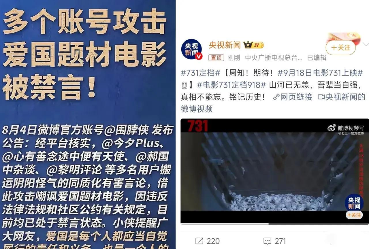 《731》电影定档于9月18日上映!时间点就是让民族清醒的切入点! 日本人不是投诉照会吗,那好,国家定调,媒体公布,9月18日上映。 当然在国内,一切都要按国家的调子走,央视新闻731定档召唤:“山河己无恙,吾辈当自强,真相不能忘,铭记历史。” 731定调是爱国题材的电影,这是铁板上钉钉,让心术不正者闭嘴,这不多个攻击爱国题材电影的账号被禁言,最好查一下这些人的底细。 731电影突然间定档,有一个感想: ①导演还原历史真相,去日本收集资料,抵押财产,不顾个人安危,是个负责任,有爱国情怀的导演。 ②国家定调护映,排除障碍,这是对民族的负责任,召唤铭记历史,也是正视现实,吾辈己自强,勇往直前。 ③731的上映,历史现场的还原,也是对投降是最好的和平,战争来了有多远跑多远观点的一个警惕,华夏民族一定要学会把羊和狼区别开,破坏民族凝聚力就是叛徒。 试想一下,当年多么可悲! 如果东北军能够认识到后果严重,稍微有点气节和良心,坚决抵抗,日本军队还能进入内地吗?还会有悲剧吗?当然,这也是蒋家王朝犯下的罪孽,现在网上还有人称为英雄! 1937年,6个日本兵押送2000多名中国警察,去南京城郊屠杀!如果有一个警察清醒后果,喊一声和他们拼了,就不会团灭! 1937年,三个日本兵占领黑龙江拜泉县。找几个东北的大话匣子都可以吓尿他。 四个日本兵占领吉林伊通县。 金一南将军讲南京大屠杀: 进攻的日军才七万,被杀的三十万人里面,10-15万是军人。 一千人、五千人、上万人,都是整批整批缴械投降的,最终也没能活命。如果一起拼命?唉,悲哀! 在当下,日本又在蠢蠢欲动的时候,731电影的上映,时间点就是让民族清醒的切入点!#731电影# #731历史电影# #731遗址旧馆# #731电影航拍# #731剧组# #现实版731# #731电影票# #国产731#