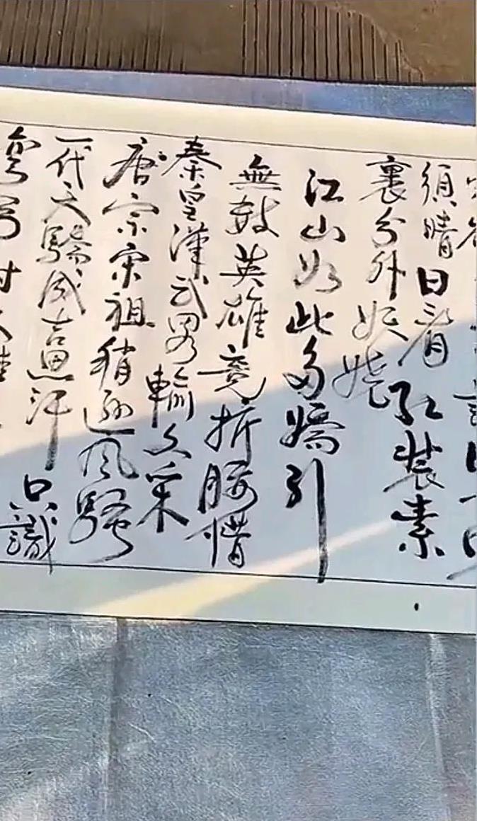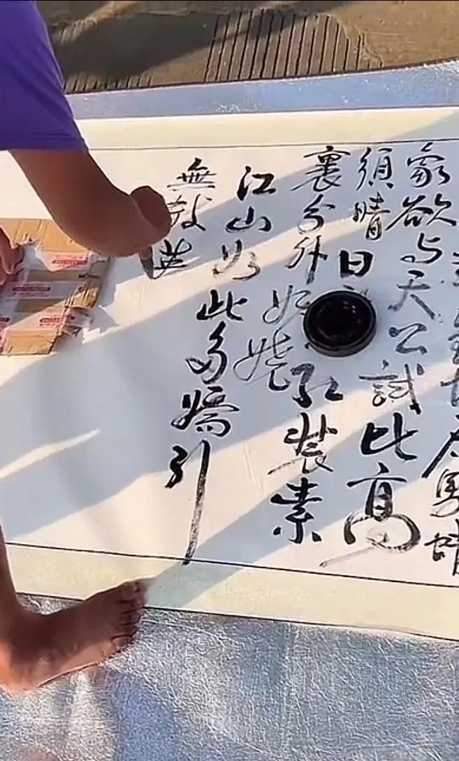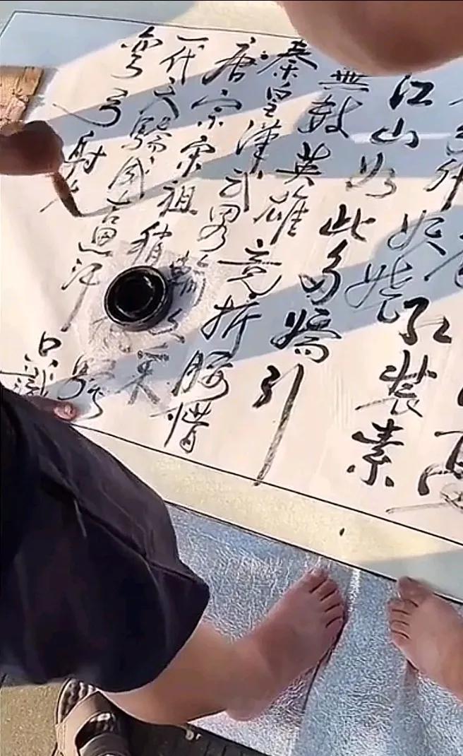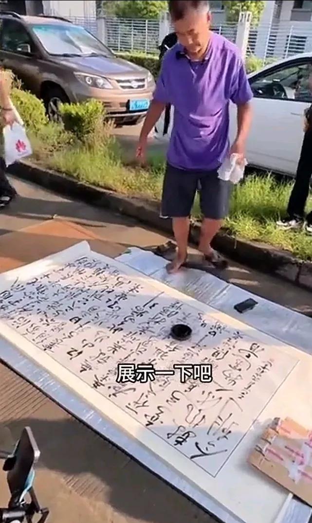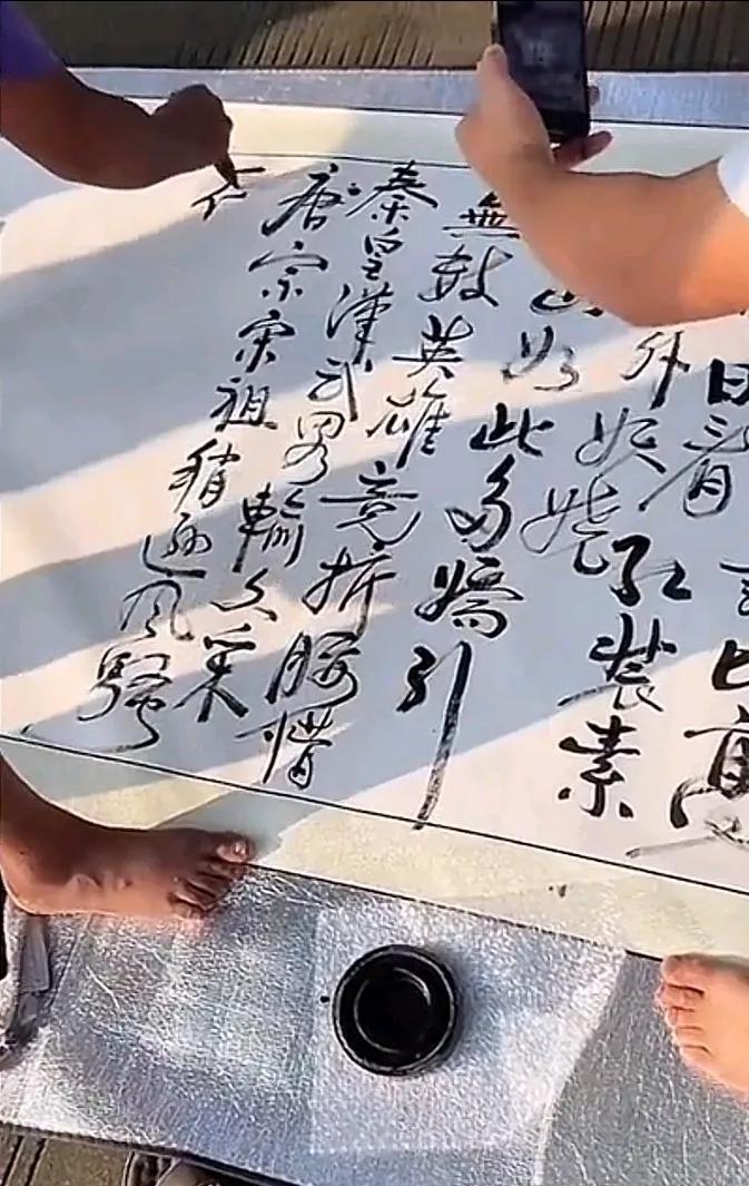 上海沈巍大师再展风骚!网友远道而来,只为了求得一幅真迹,题目是毛爷爷的《沁园春.雪》,网友专门买来国画纸,包装精美,当打开那一刻,一幅大卷成现面前约1.2X2米,沈巍大师盛情难却,赤着脚开始执笔,全神贯注赤脚蹲地,挥斥方遒。气势磅礴的《沁园春.雪》在大师的手中完成……,落款;已己年夏沈巍,网友赞不绝口拍照留影,这位网友再三感谢沈巍劳笔。