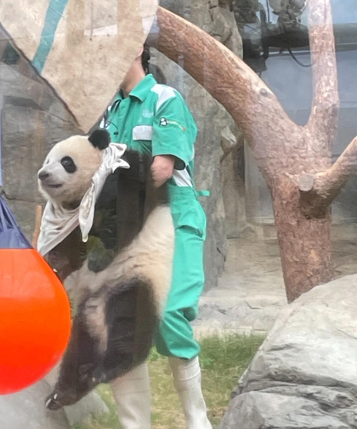 香港大熊猫…这是太紫殿下啊! 饲养员姐姐抱着的熊猫宝宝 圆滚滚胖乎乎的 活脱脱一个巨型毛绒玩具 脑袋圆圆的,毛蓬蓬的 还一脸乖巧地被姐姐抱着 简直要把我的心都萌化了 好想冲进去rua一把啊啊啊 救命,熊猫怎么能这么可爱 果然是国宝,可爱也是顶级的! #晒图笔记大赛#
