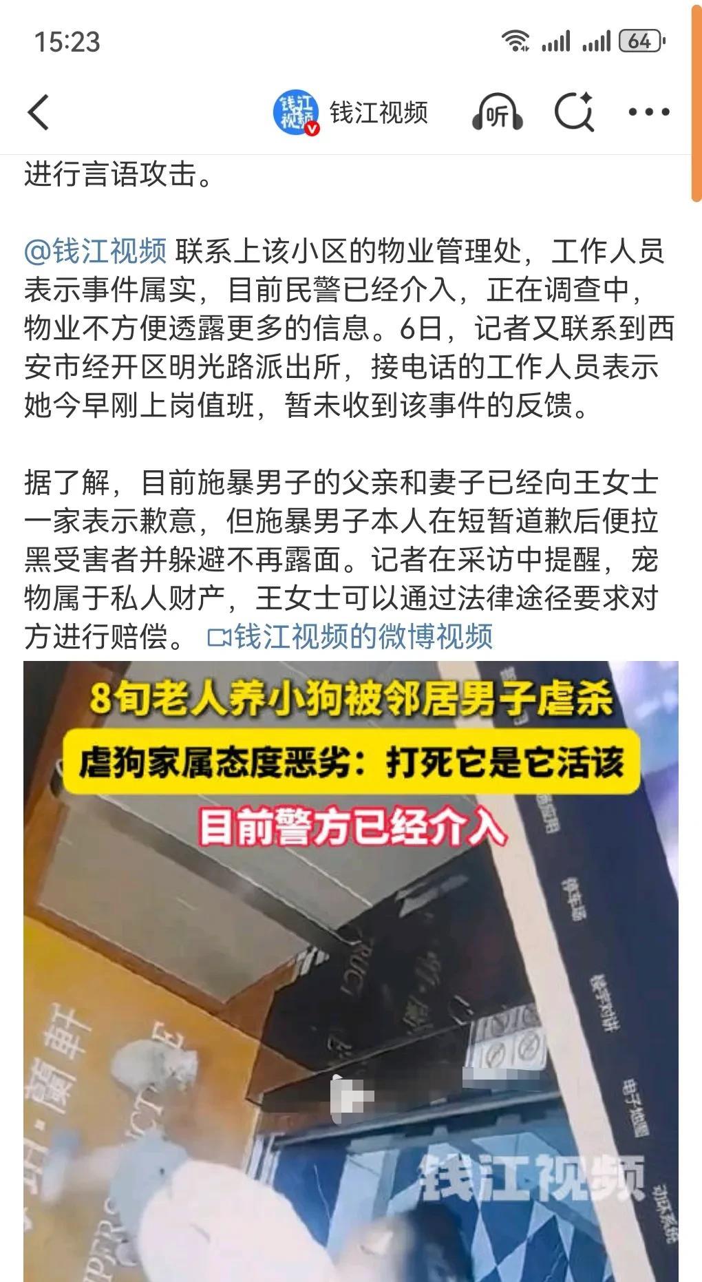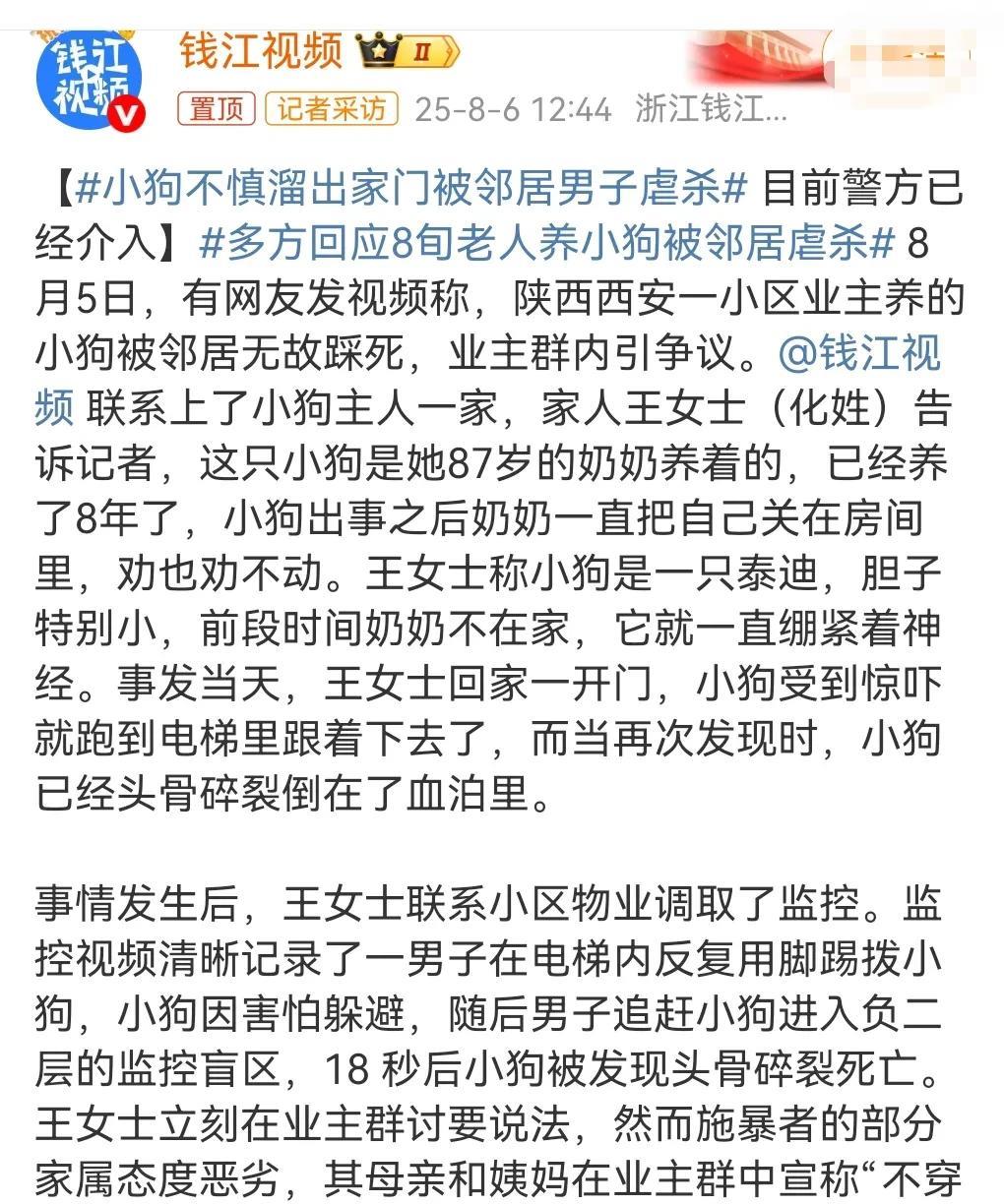 这真的是太丧心病狂了。 连这么小的狗,男子都下得了手,果然是够残暴。 近日有网友发视频称,小狗不慎溜出家门被邻居男子虐杀。 小狗受到惊吓,本来跑出去了,没想到这男子故意追上小狗并残忍地将狗弄死了。 这就是典型的坏。 这肯定是要赔钱的,毕竟宠物也是别人的财产。 对于这种坏人不赔钱的话,直接拘留。