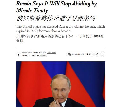 从中国借来的东风,给了俄罗斯人底气,苏联留下来的老镣铐,普京不想再戴了 据美媒《纽约时报》报道,俄外交部于日前突然宣布,叫停美俄《中导条约》。梅德韦杰夫放话“反制才刚开始”。这纸1987年冷战遗物,自2019年美国退约后已成空文,如今俄方干脆彻底掀桌。俄新型“榛树”导弹射程3000-5500公里,堪比东风-26,将部署白俄直指北约腹地。西方发现:俄罗斯敢叫板的底气,藏在中国东风导弹的影子里。中程导弹+高超音速技术的组合,正是中国玩明白的撒手锏。普京这把是借了中国的东风好扬帆啊。 西方媒体最近老提一个事。说俄罗斯的导弹技术突然进步了。背后有中国的影子。这话说得也不是完全没道理。中国的东风系列导弹确实给全世界上了一课。特别是东风-26。射程4000公里。能打航母能打陆地目标。关键是还能机动变轨。 俄罗斯人不傻。他们看得很清楚。中国靠着中程导弹把美军航母编队挡在第二岛链外。这招太好使了。美国人想干预台海。先得掂量掂量自己的航母能不能扛住东风快递。俄罗斯现在也想学这一手。 技术路线上俄罗斯确实在借鉴中国经验。高超音速技术配上中程导弹。这个组合拳威力巨大。传统的反导系统根本拦不住。速度太快轨迹太诡异。雷达刚锁定目标就已经打到头上了。 中俄在导弹技术上的合作其实由来已久。双方经常交流弹道计算、制导技术这些东西。俄罗斯有苏联时期的老底子。中国有新时代的创新能力。两家一合计。技术进步飞快。 普京选择现在掀桌子时机很巧妙。北约正忙着援助乌克兰。军费都快掏空了。哪还有钱搞新的反导系统?美国的爱国者都送到基辅去了。欧洲本土的防空网千疮百孔。这时候俄罗斯亮出中程导弹。北约只能干瞪眼。 更要命的是部署地点。白俄罗斯离波兰边境就几十公里。导弹一起飞。华沙的防空警报就得响。德国法国也好不到哪去。飞行时间太短了。根本来不及反应。这种心理压力比实际威胁还大。 俄罗斯这次不光是军事考量。政治意义更大。《中导条约》是冷战遗产。代表着美苏两强争霸的旧秩序。现在俄罗斯主动废约。等于宣告那个时代彻底结束了。新的游戏规则由俄罗斯自己定。 中国的成功经验给了俄罗斯信心。您看中国这些年。东风导弹越造越多。美国除了嘴上抗议啥也干不了。军舰不敢靠太近。飞机不敢飞太低。生怕被导弹锁定。俄罗斯看在眼里。心想这招咱也能学。 技术细节上俄罗斯确实在追赶。"榛树"导弹据说采用了新型固体燃料。发射准备时间大大缩短。机动性也提高了。这些技术特征跟中国的东风-26很像。都是强调快速反应和生存能力。 西方的反应很有意思。一边指责俄罗斯破坏军控体系。一边又说要加强反导建设。可问题是钱从哪来?技术够不够用?中国的东风导弹已经证明了。传统反导系统对付高超音速武器就是个笑话。 俄罗斯这步棋还有个深意。逼着欧洲选边站。要么接受俄罗斯的新现实。要么掏钱搞军备竞赛。欧洲经济本来就不景气。再搞军备竞赛更吃不消。最后可能不得不跟俄罗斯谈判。 中国在这件事上的态度很微妙。官方不评论不表态。但私底下肯定乐见其成。俄罗斯在欧洲方向牵制北约。中国在亚太的压力就小了。这种默契配合不用明说。大家心照不宣。 普京这次借中国的东风扬帆。算是看明白了一个道理。在这个时代光靠核武器吓唬人不够用了。得有实实在在能用的常规威慑手段。中程导弹就是最好的选择。打得到用得上。威慑效果立竿见影。 未来俄罗斯可能还会有更多动作。"榛树"只是开始。后面可能还有射程更远精度更高的型号。技术路线上继续向中国看齐。高超音速加变轨机动。让对手的反导系统形同虚设。 这件事给世界一个信号。冷战时期那套军控体系已经过时了。新的大国竞争需要新的游戏规则。中国用东风导弹改写了亚太军事平衡。俄罗斯现在也想在欧洲复制这个模式。美国主导的旧秩序正在瓦解。新的多极格局正在形成。#头号创作者激励计划#