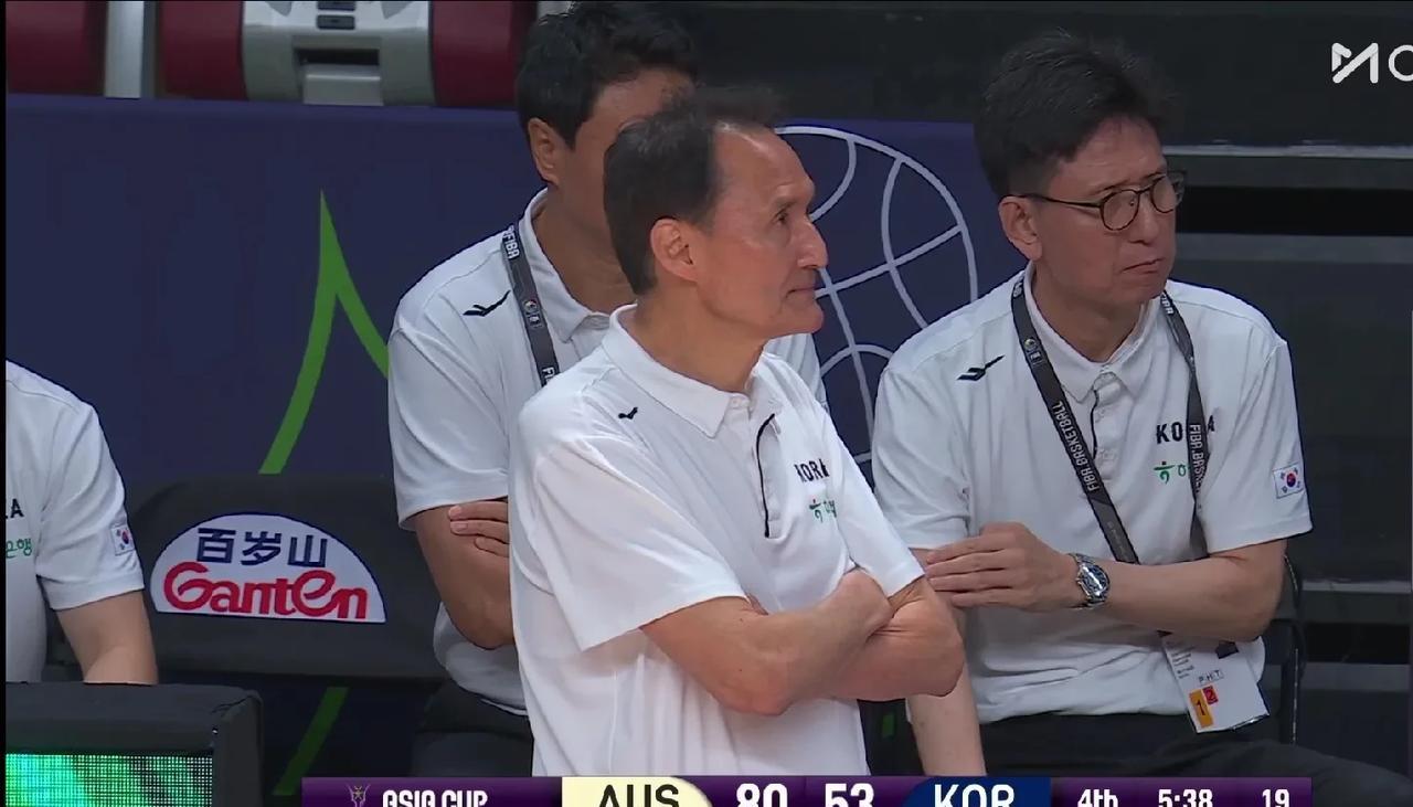 韩国主教练如坐针毡,面色苍白!亲眼目睹被澳大利亚狂胜33分,这老教练双手环绕于胸