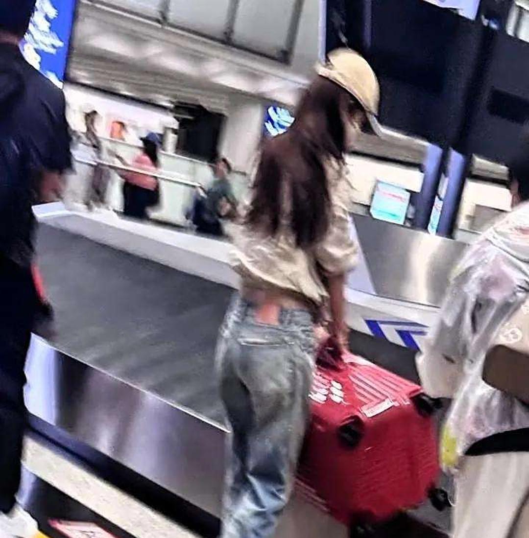 anglebaby杨颖和儿子小海绵现身香港机场,没有助理帮忙,自己亲力亲为搬行李