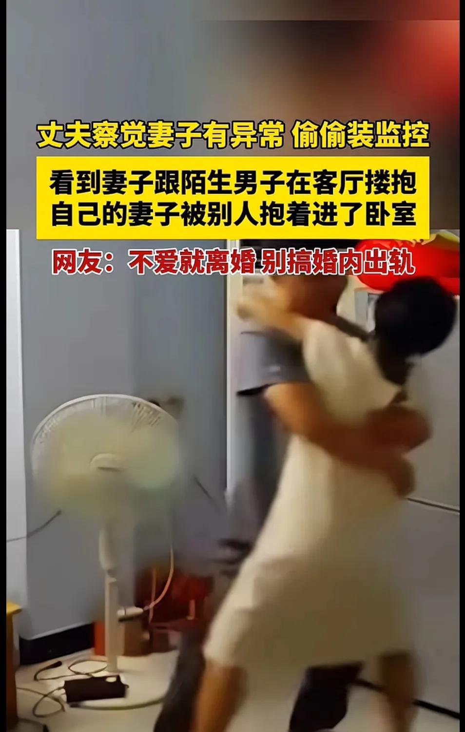 老婆被别人从客厅抱到了卧室!一男子发现老婆最近行为异常,总是神神秘秘的!便在家里客厅偷偷装了一个监控!结果看到妻子和一个陌生男人在客厅有说有笑、搂搂抱抱!最后妻子被陌生男子抱到了卧室里!男子一下子心情沉到了谷底,不爱了就离婚,不要搞婚外伤害!