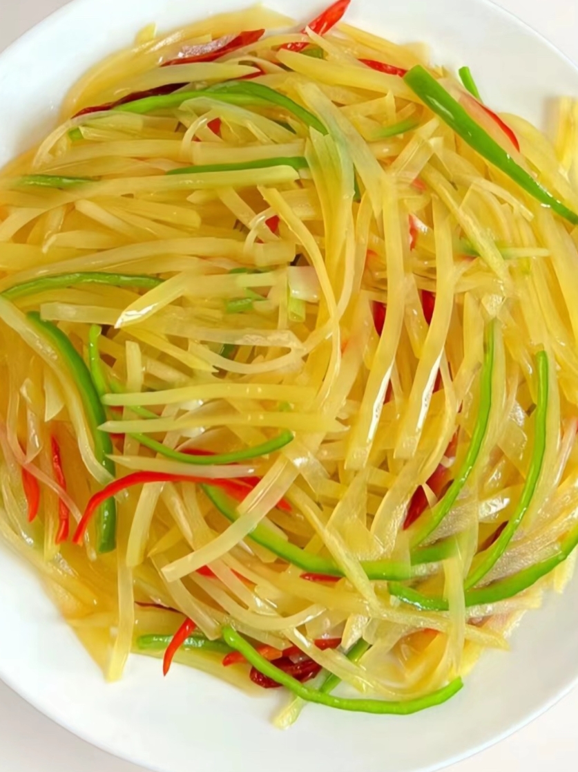 炒土豆丝不能太脆了也不能太粉了也不能太油了再加青红椒实际上很考验厨师!