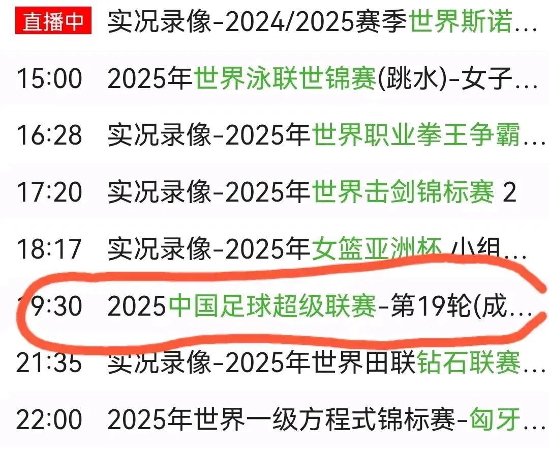 刚看了 CCTV 5+ 八号节目单里并没有安排直播中超比赛