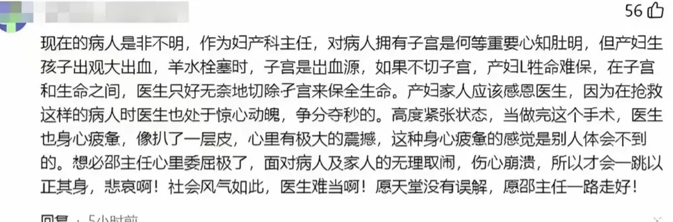 当时羊水栓塞,是你们求着邵医生,手/术,救了你和孩子两条/命,2天后,大人孩子都恢复的不错!没想到,家里人,认为生的是女儿,以后不能生儿子了,非要医生担责任,赔钱,就翻脸,把人告了,还在网上曝光,