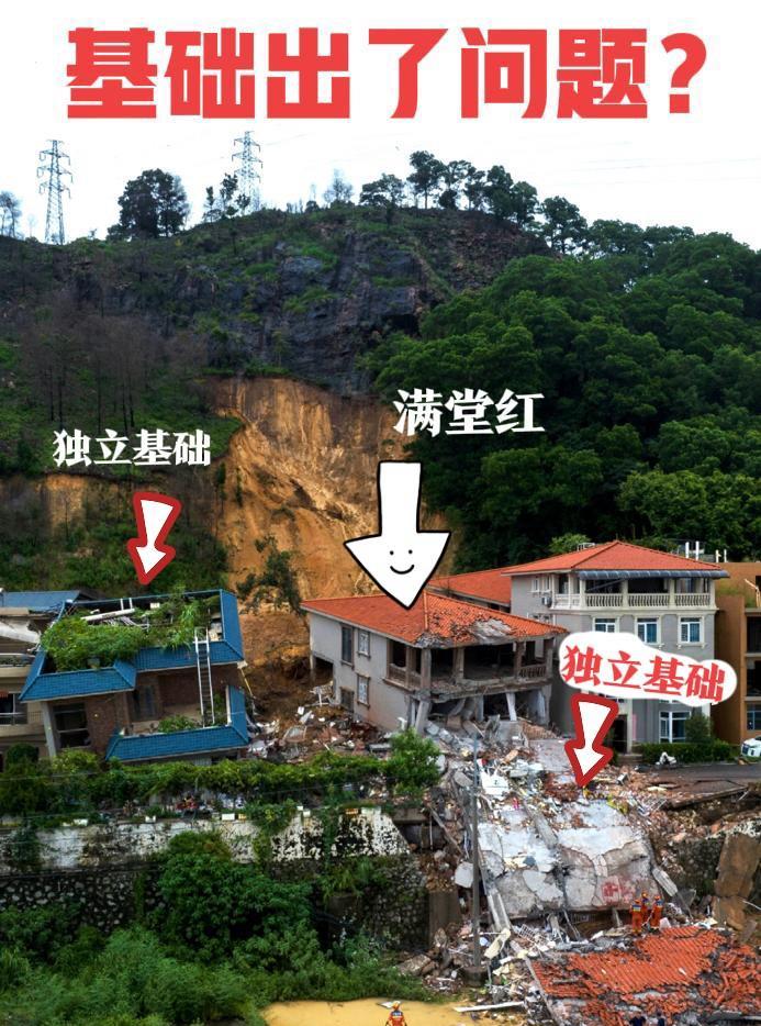 发现没,广州山体滑坡现场很怪异[发怒][发怒] 受波及的有4栋房子移位 其中3栋基本没倒,1栋粉碎性塌掉[捂脸][捂脸] 什么原因?以我的经验来看, 应该是房子的基础没做好, 就像老话说的,基础不牢,地动山摇, 这4栋房子的基础都出现了移位, 说明没有做桩基础,无法固定在原位, 另外,几栋房子都有柱子, 所以基础做法大概率是独立基础或满堂红 粉碎性倒塌的房子,和旁边蓝屋顶房子, 位于前排,应该是独立基础, 在后排房屋推前排的时候, 基础断开,房屋出现不均匀沉降, 接着逐渐倾斜,蓝屋顶倾斜角度不大, 但红色屋顶房子倾斜过度, 最后完全支撑不住,轰然倒塌, 这次的失踪人员,应该就在这栋楼 后排的红屋顶房子,应该是满堂红基础, 因为房屋移位,但没有倾斜, 说明基础是一块板,然后整体移动[心][心] 所以,不同的基础做法, 在应对山体滑坡的情况下, 最后的结果,自然大不相同, 家里有条件的话,如果在山区建房, 还是选用满堂红加上桩基础, 同意吗? 另外,对于上面的基础做法分析, 您的看法如何? 欢迎各位一起讨论学习[作揖][作揖] #晒图笔记大赛# #头号创作者激励计划#