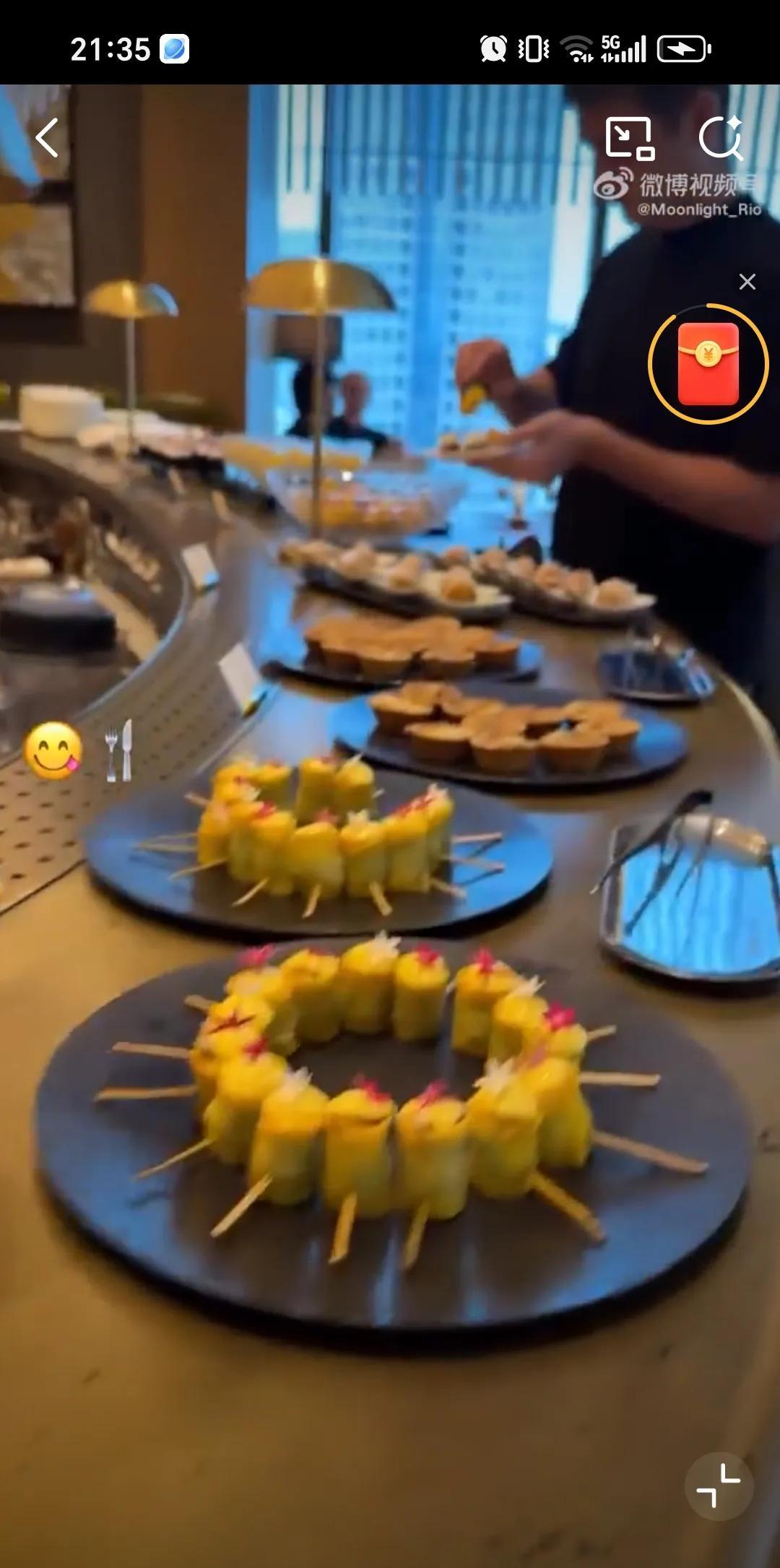 8月6日横滨冠军赛欢迎晚宴一看就很日本,这么点量能吃饱吗?一人拿一个应该都不够,我感觉参加完晚宴回去还得吃一顿,因为运动员运动量比较大。 但是摆盘很漂亮,就这个摆盘感觉很漂亮。有种想要去吃一口的心情,张本智和和蒯曼,袁嘉楠等人感觉更多是聊天,盘子都没什么,因为多吃一个别人可能吃不到了。