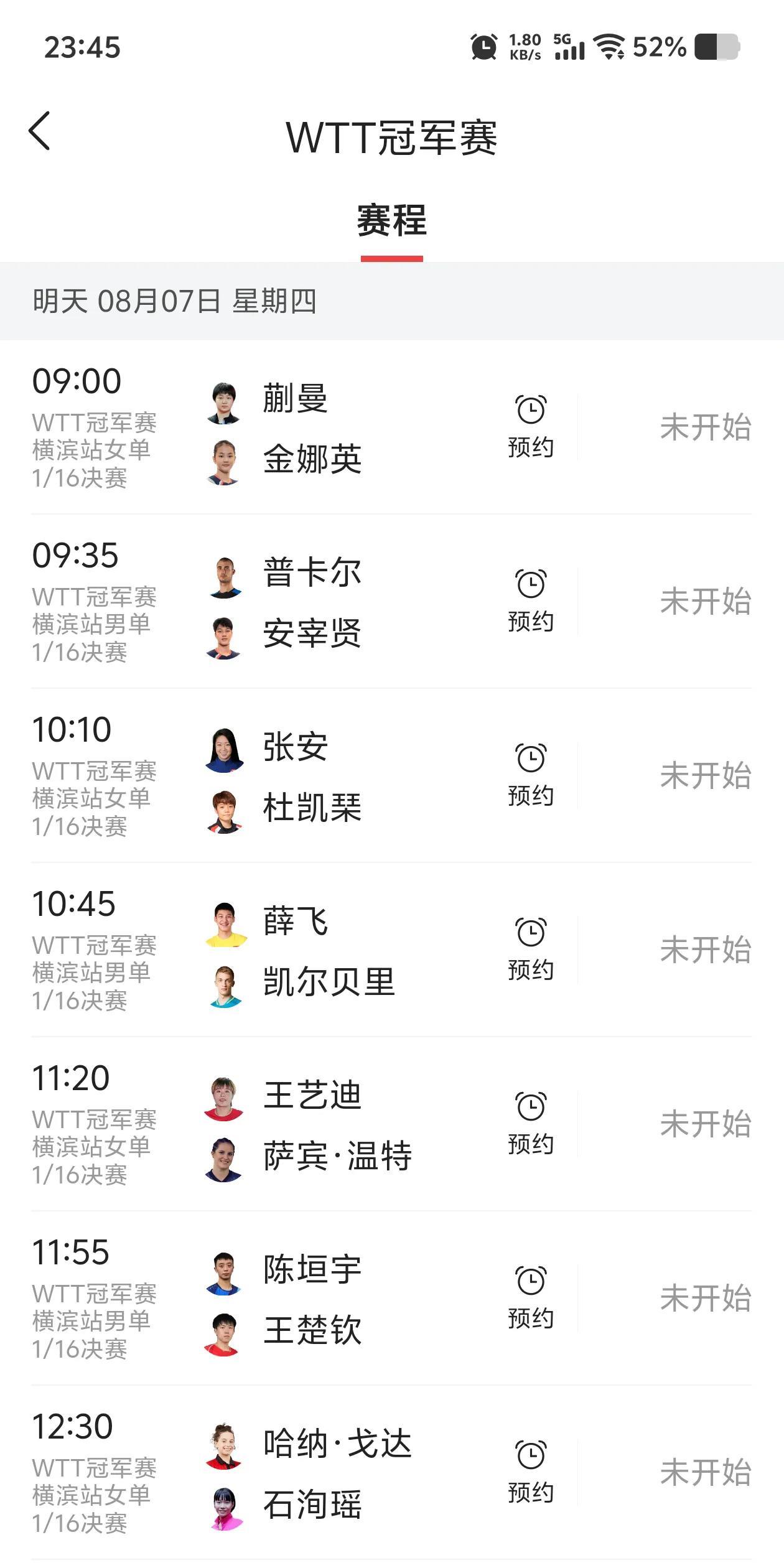 WTT横滨冠军赛8月7日国乒焦点战! 一、蒯曼VS金娜英 比赛时间:9:00 两