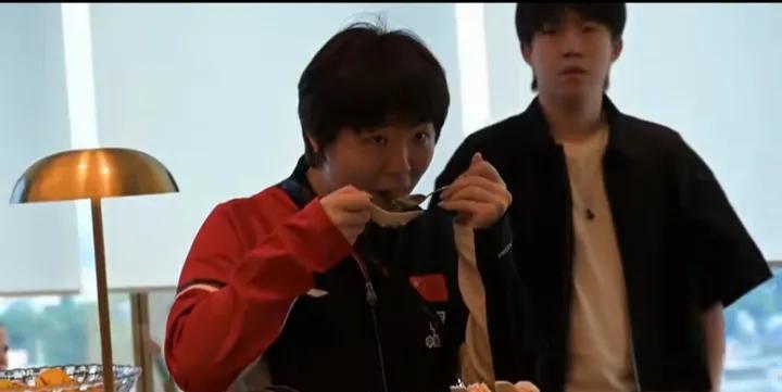 王楚钦对海鲜过敏只能看着蒯曼吃的那么香[呲牙][捂脸]!日本横滨比赛晚宴全是海鲜。偏偏大头不能吃海鲜。看着大头转来转去挺好玩的。奇怪为什么有人会对海鲜过敏。[笑哭][大笑][呲牙]大头看完蒯曼,不行你去看小豆包吃的也可香了。