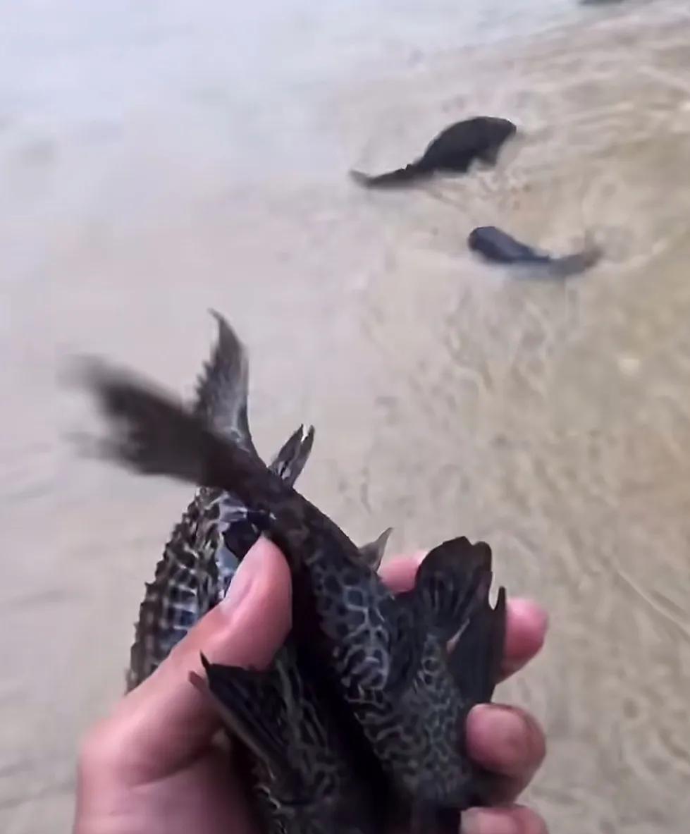 一场暴雨过后,大水褪去,南方一处河道里,很多鱼都游到了路上。 男子拎着桶,走上前去捡鱼! 这才发现,全是同一种鱼,它全身都是斑纹,样子也很奇怪,背鳍很大,嘴巴在头底下! 原来是“清道夫”鱼! 这是一种外来物种,它们比食人鱼更可怕,在河道里,会把其他鱼类的鱼卵吃掉,严重破坏原有的生态平衡。 这种鱼即便是脱离水体很久也不会死,适应能力很强,没有天敌! 捞出来只能掩埋处理。 最早它只是一种观赏鱼,有人不想养了,就放生到本地河里,造成了生态灾难! 满河都是这种鱼,不见其他鱼种! 这也暴露出一个监管漏洞。 #头号创作者激励计划# #老家河里的鱼# #河边的怪鱼#