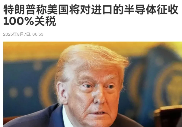 赖清德遭遇当头一棒!刚被美国宣布加税20%,特朗普这次又要刨台湾经济的根!8月7日,美国总统特朗普表示,美国将对进口芯片和半导体产品征收100%的关税。如果这些产品在美国生产,公司将不会面临关税。他没有明确说明限制措施的实施时间。很显然,特朗普的这一宣布,台湾是首当其冲。