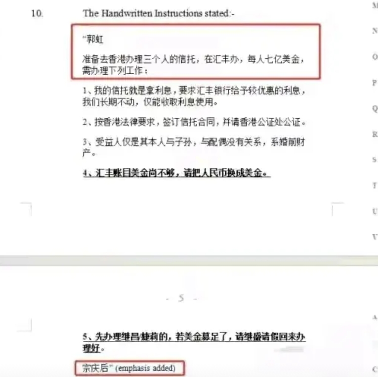 杜某凭什么把中国资产转移到美国去?!没有任何证据证明宗老和三个美国人有任何血缘关系!宗老与唯一的妻子施女士(宗馥莉妈妈)的婚姻存续至宗老去世!宗老和杜女士没有任何关系!宗老有公证遗嘱将财产指定由唯一女儿宗馥莉继承!宗馥莉有能力维护好娃哈哈的发展!其他不相干的人企图吞噬不属于它们的财产,并转移资金到美国,阴谋不可能得逞!