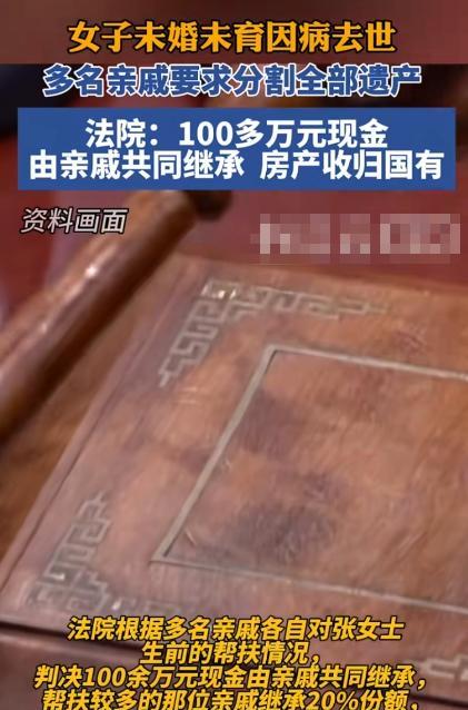 “白嫖成功了?”北京一女子因病去世,留下一套价值400万的房子和100多万现金,由于她未婚未育,也没立遗嘱,亲戚们都认为自己有继承权,于是起诉至法院瓜分遗产!法院判了! 人生在世,每个人都是自己的主角。然而,当生命戛然而止的时候,那些未完成的愿望,那些看不完的风景,都将成为最后的遗憾。 不过,人生嘛,遗憾总是常态,但留有遗憾的一生何尝不是另一种圆满呢?对于41岁张女士来说,可能唯一的遗憾就是没能生儿育女,没能在晚年生活的安详、幸福。 据媒体8月4日报道,来自北京的张女士一直以来都是一个人生活,没有结婚更没有生育。 但张女士在事业上可谓是个女强人,不仅在北京昌平区有一套101平方米的房子,价值400多万。除此之外,还有110多万元的财产。 但是,张女士却没能好好享受自己打拼下来的事业,就在一次检查中查出了自己已经患上了尿毒症。 这时的张女士应该是被全家人呵护照料着,然而由于她常年独身一人,父母也早已离世,所以病痛的折磨只有张女士一人默默忍受。 众所周知,身患尿毒症的患者身体会越来越虚弱。有家人照料的患者都十分痛苦了,孤身一人的张女士更是尝尽了所有苦楚。 幸好,在张女士需要人手,需要帮助的时候,社区的一位志愿者和一位亲戚总是在她身边照顾。并且张女士住院时好多手续都是这位亲戚办理的。 可以说,在众多亲戚中,这位亲戚是出力最多的人。 值得注意的是,在张女士刚确诊需要人手时,其他亲戚根本见不到人影,但是当她病情加重,直接住进医院后,各种亲戚都开始现身。 这些七大姑八大姨不仅每天主动前来照料,甚至还轮着班来探视。他们这样的行为,不用多说大家自然都能明白是为了什么。 虽然,张女士也明白这群亲戚的真实意图,但她怎么都想不到,这段时间的温馨,却成为了自己离世后的纠纷矛头。 可能大家会好奇,张女士有这么多资产,为什么不在自己确诊的时候赶紧立下遗嘱,省的这群亲戚老惦记。 对于这个问题,真相我们就不得而知了。可能是因为张女士发病急,还没来得及立遗嘱,也可能是张女士刚准备立遗嘱,就意外离世了。 就这样,在张女士离世后,并没有留下任何关于遗产分配的文件。众做周知,在没有立遗嘱的情况下,配偶、子女、父母是第一顺位继承人。 但从上文中,我们已经得知张女士是没有第一顺位继承人的,所以这时就轮到了第二顺位继承人,那就是张女士的兄弟姐妹。 令人意外的是,第二顺位继承人也没有,在这种情况下,张女士名下的巨额遗产暂时成为了“无主物”。 这些情况,在张女士病重住院“悉心”照料的亲戚们自然也十分清楚。所以,这个时候,他们便纷纷跳了出来。 按照他们的说法,由于张女士在住院期间都尽了心、照顾过她,也算是尽到了抚养的义务,所以房子和现金也有他们的一部分。他们甚至为了都分到遗产,还起诉到了法庭,让法院审理。 在法院的调查下发现,在张女士患病期间,基本生活完全可以自理,并且基本都是独立完成饮食起居。 并且最重要的是,在张女士有困难的时候,只有一位亲戚和社区工作人员陪同在身边,并且从张女士生前的病历中还能看到这位亲戚的签字。 所以法院认为,平时亲戚之间相互走访、照看并不能等同于抚养,具体的抚养行为还是要看他们在张女士生前都做过什么贡献。 所以经过法院的审判,100万的现金有亲戚继承,那位在张女士生前给她签字的亲戚,由于帮扶较多,所以继承20%的财产,而其余的亲戚,则每人10%。 至于张女士400万的房产,则又区民政局管理,归国家所有。 可能许多人对法院的这一审理无法理解,毕竟亲戚们分财产还有情可原,那么为什么张女士的房产归国家所有呢? 其实,对于这样的案例,张女士并不是唯一,之前有一位来自上海的老人,情况跟张女士差不多。 意外猝死后留下430万现金和一套房产无一人继承,最后法院判定430万现金中的130万分给老人的堂弟,其余的所有遗产全部收归国有。 看到这里,大部分人应该都有一个疑惑,为什么不将所有的遗产分给这些亲戚呢? 根据我国的法律条文,在张女士的案件中,旁系亲属已经获得了部分遗产,所以无权再分的房产,并且根据民法典规定,无人继承又无遗嘱的遗产,归国家所有。 因为死者生前是集体所有制组织成员的,归所在集体所有制组织所有。简单来说,就是人在生前是集体的,死后的遗产自然也归集体所有。 而那些亲戚能分到部分遗产,也是因为在生前确实为张女士尽了部分责任。 当这件事情被传到网上后,瞬间引起了网友们的热议,有网友表示:涨知识了。在没有合法继承人又没有立下遗嘱的情况下,房产就要归公所有了。 还有网友直接了当的说:看来单身的人不适合买房存款,贷款过日子最好。 参考资料: 北京一女子未婚未育去世,亲戚起诉分遗产!法院判了——半岛晨报2025-08-04