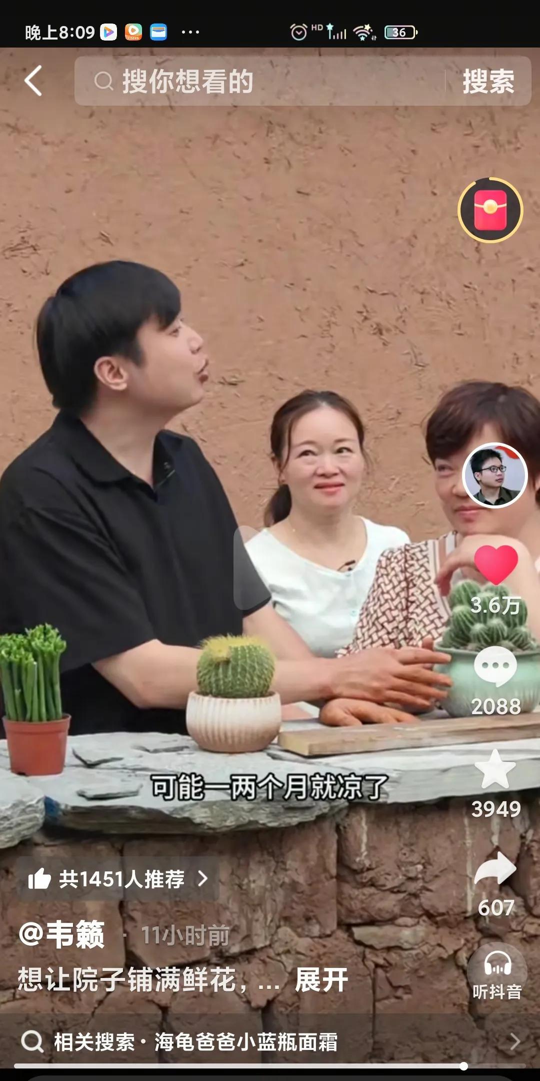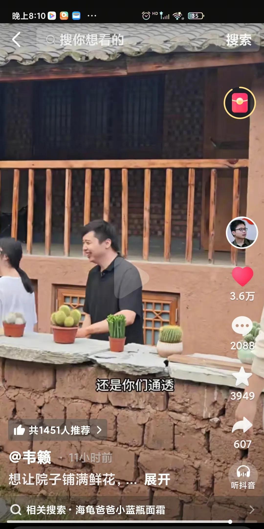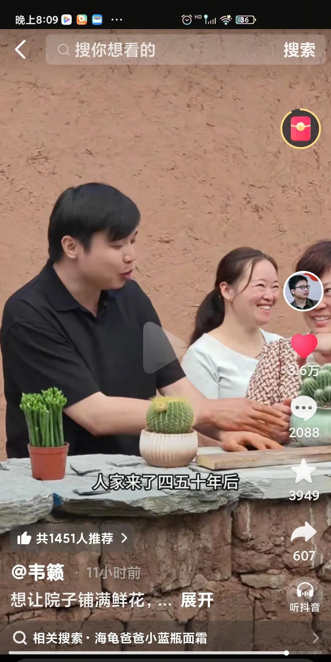 小娜还是跟韦赖在一起最合适[捂脸] 还是韦赖会说话,说的小娜心花怒放的,开心极了。 韦赖说看到小娜种的花他都不想种了,小娜买的花最起码有花盆,就算花没有了盆还在,最起码能保存个四五十年,这四五十年如果有游客来了,都知道这花盆是小娜买的,夸小娜有远见,够通透。 韦赖这是情人眼里出西施吗?就连胖阿姨都为之着迷了,看胖阿姨的眼神还有表情,这是要撮合韦赖和小娜吗[捂脸]