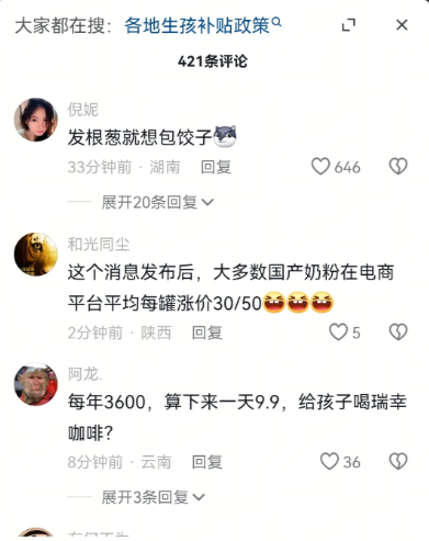 一听发补贴,奶粉尿布全涨价,玛德那点补贴都不够涨的价的,更特么不生了