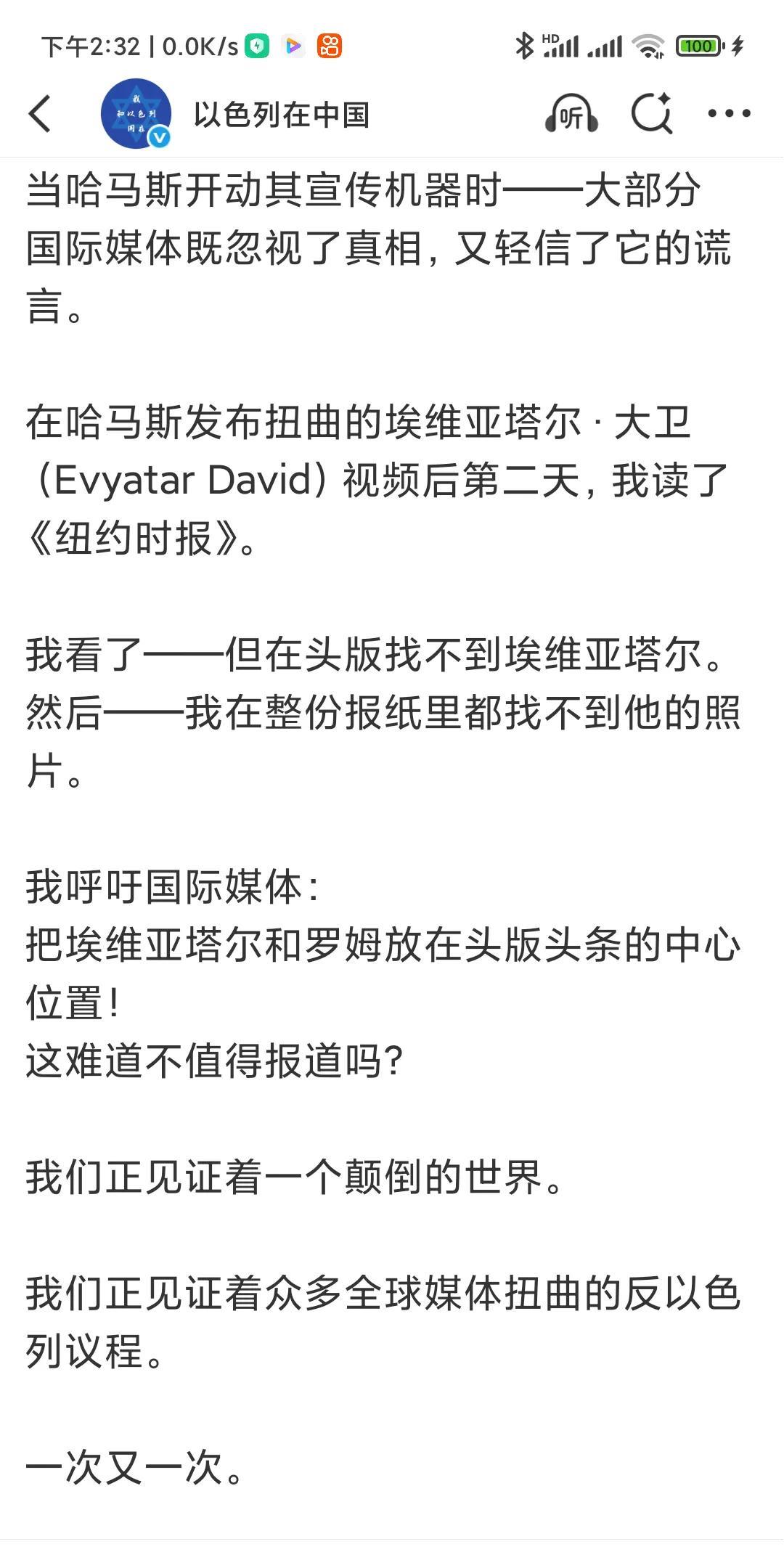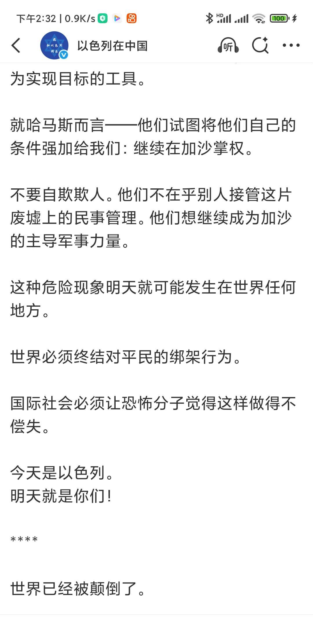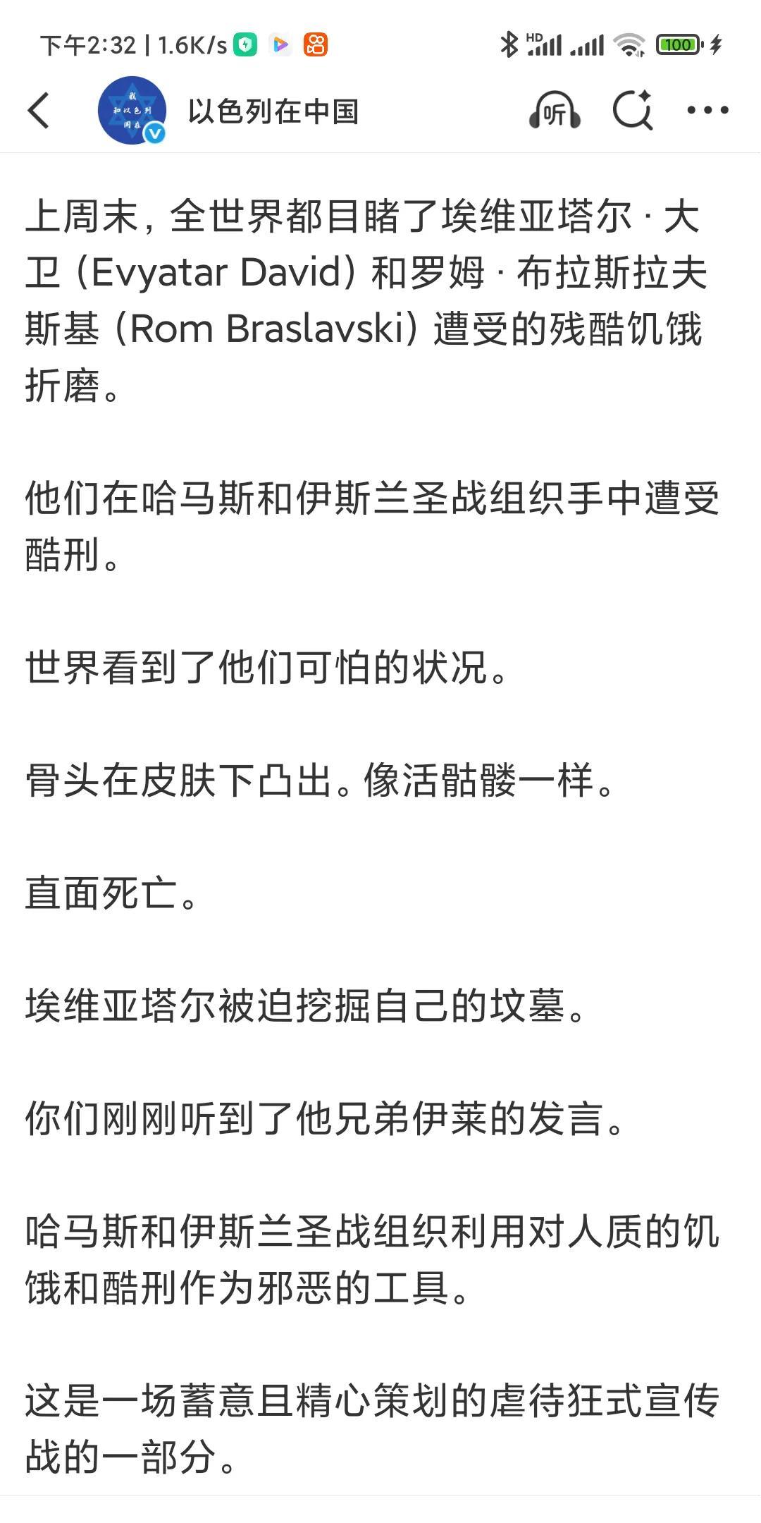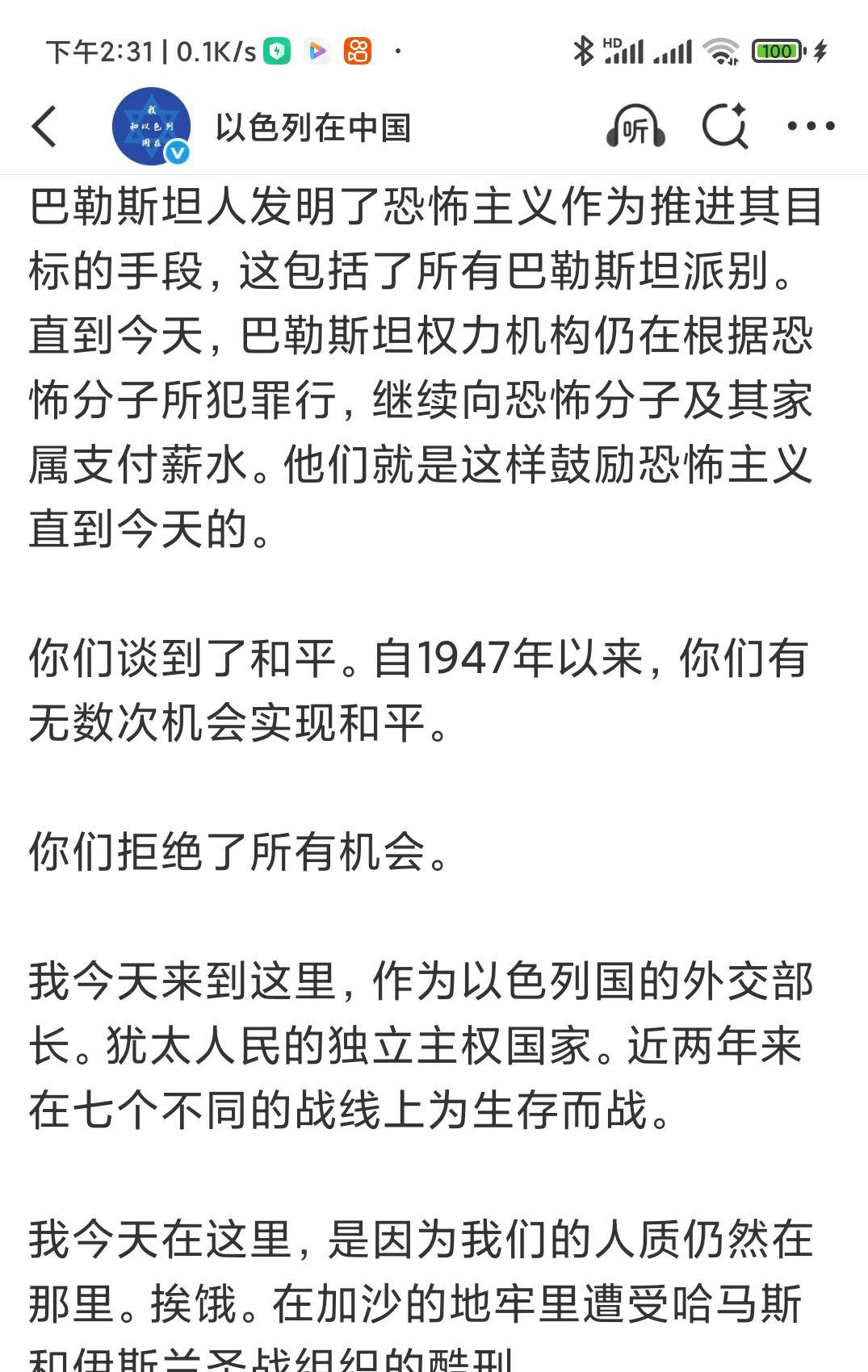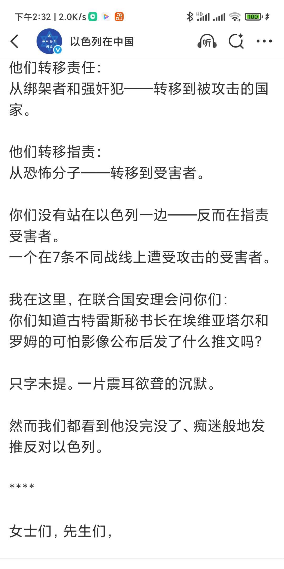 以色列外长大闹联合国! 哈马斯播放出埃维亚塔尔(Evyatar)和罗姆(Rom)两名人质的视频影像后,以色列把人质事件闹到了联合国。 使联合国就此事专门召开了安理会专题会议。 在这次会议上,以色列外长吉迪恩·萨阿尔的大发雷霆,他不仅怒诉俄罗斯,怒诉巴勒斯坦,怒诉世界媒体,甚至还怒诉联合国和联合国秘书长古特雷斯! 他指责古特雷斯作为联合国秘书长,对人质事件置若罔闻,只字不提。 他称:“我在这里,在联合国安理会问你们:你们知道古特雷斯秘书长在埃维亚塔尔(Evyatar)和罗姆(Rom)的可怕影像公布后发了什么推文吗?只字未提。一片震耳欲聋的沉默。” 大骂包括《纽约时报》在内的世界媒体装聋作哑! 他怒道: 由于各国多数代表对以色列的指责,使他恼羞成怒! 俄罗斯代表发言后,他说“我们也在这里听到了如此多的谎言,我无法一一提及。但听到俄罗斯联邦代表在残酷入侵乌克兰并进行三年半的残酷战争、轰炸基辅和其他地方平民之后在这里发言,真是非常可笑。并称,巴勒斯坦从他们那里学习到了宣传经验。 他指责世界已经颠倒! 他把造成加沙现在的惨状,责任完全在哈马斯。 他呼吁联合国安理会: 最终谴责哈马斯的邪恶罪行。 追究其责任。 并要求立即释放所有人质。 整篇怒不可遏的文章除了指责和痛骂,就是推责,对以色列在加沙的行为只字未提! 看来,不知道您有什么感受?欢迎评论。 (截图全文)