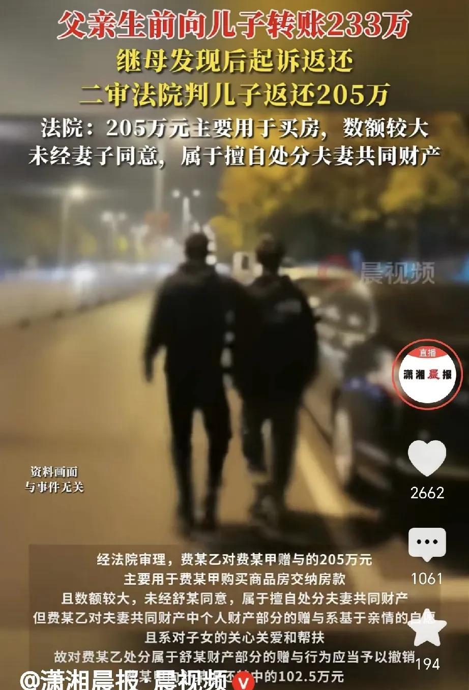 倒反天罡!新疆乌鲁木齐,一男子二婚,为给原配儿子买房,转给儿子233万,没过几年